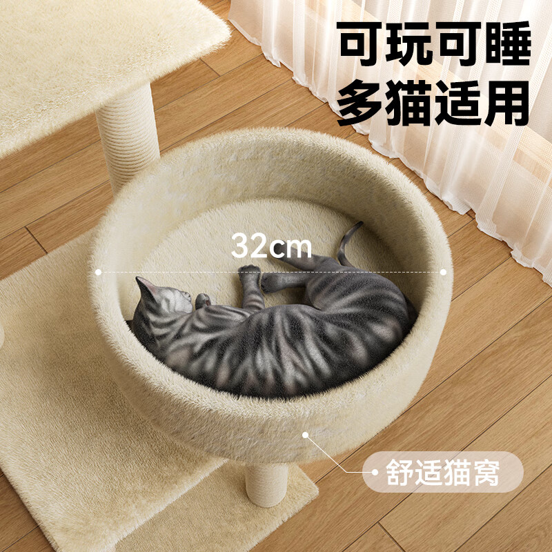 宠贝亚猫爬架实木猫窝猫树一体全实木猫架猫塔太空舱剑麻大型架子