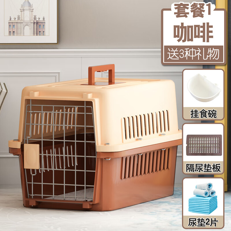 CLCEY柯基航空箱猫笼子便携外出猫咪狗狗宠物狗笼子太空小型犬托运车载 咖啡色(套餐一) 1号箱【12斤内猫狗】