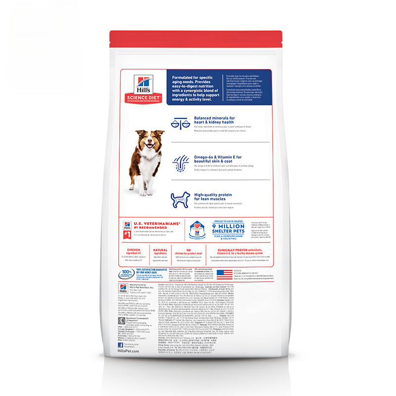 希尔思狗粮 美国进口老年犬通用犬宠物鸡肉味狗干粮 泰迪金毛柯基比熊 15磅/6.8KG