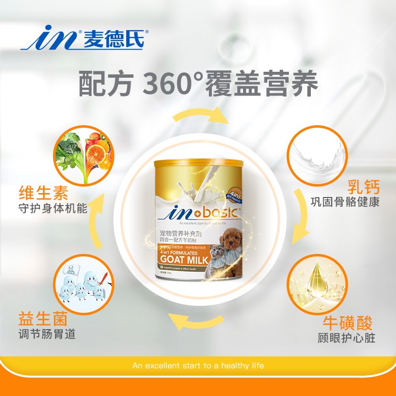 麦德氏in-Basic系列 四合一配方羊奶粉 营养补充呵护肠胃幼猫幼犬老年猫老年犬成长期通用 300g