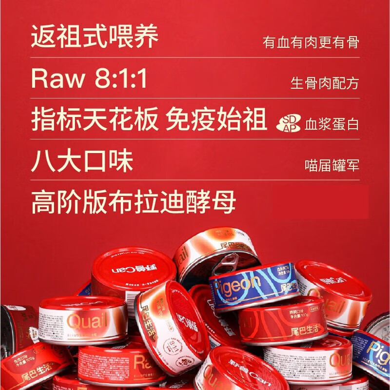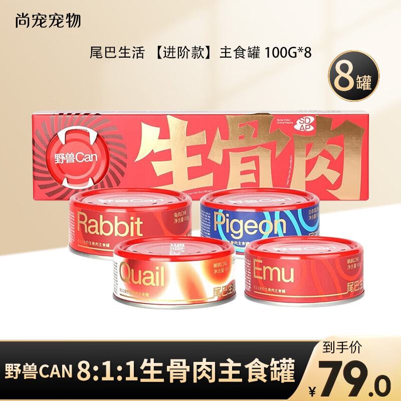 尾巴生活猫罐头 野兽CAN 811生骨肉主食猫罐头170g 猫咪幼猫成猫罐头湿粮 【进阶款】100g*8罐