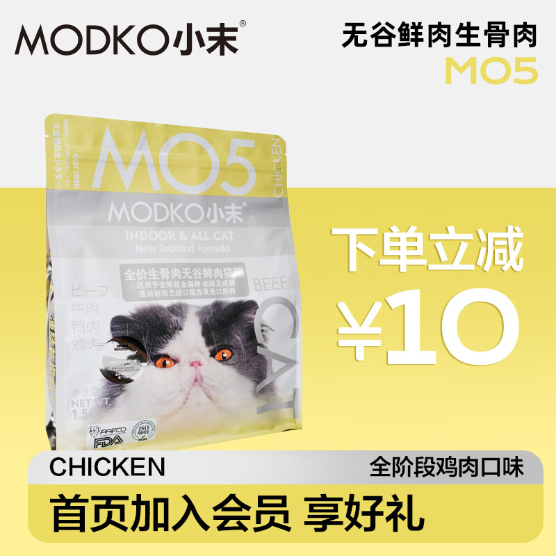 小末MODKO宠物无谷鲜肉主猫粮成猫牛肉鸡肉试吃低卡强健英短美短通用主粮1.5kg 无谷鸡肉口味