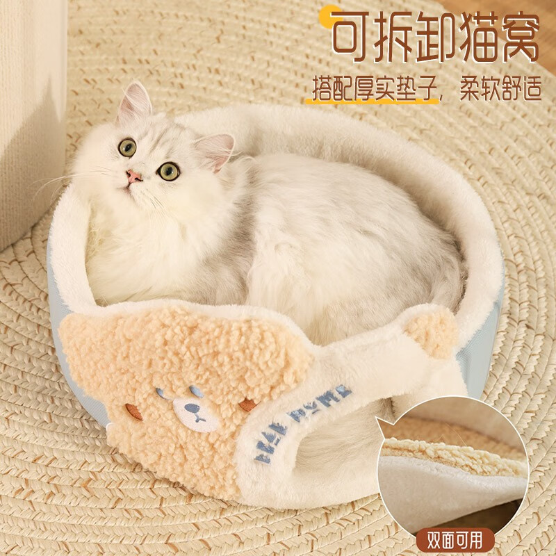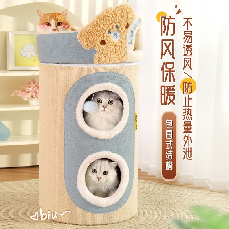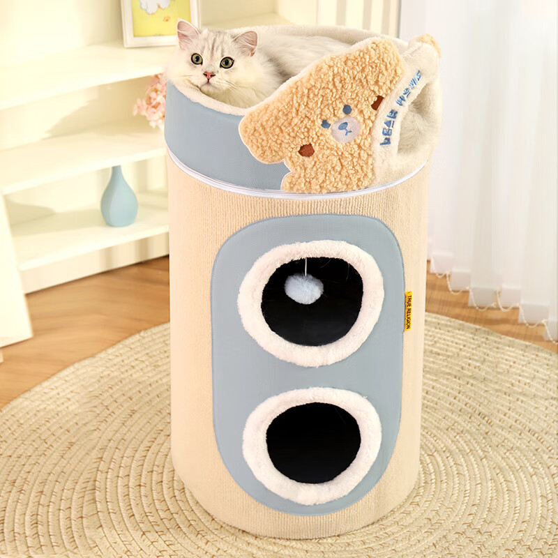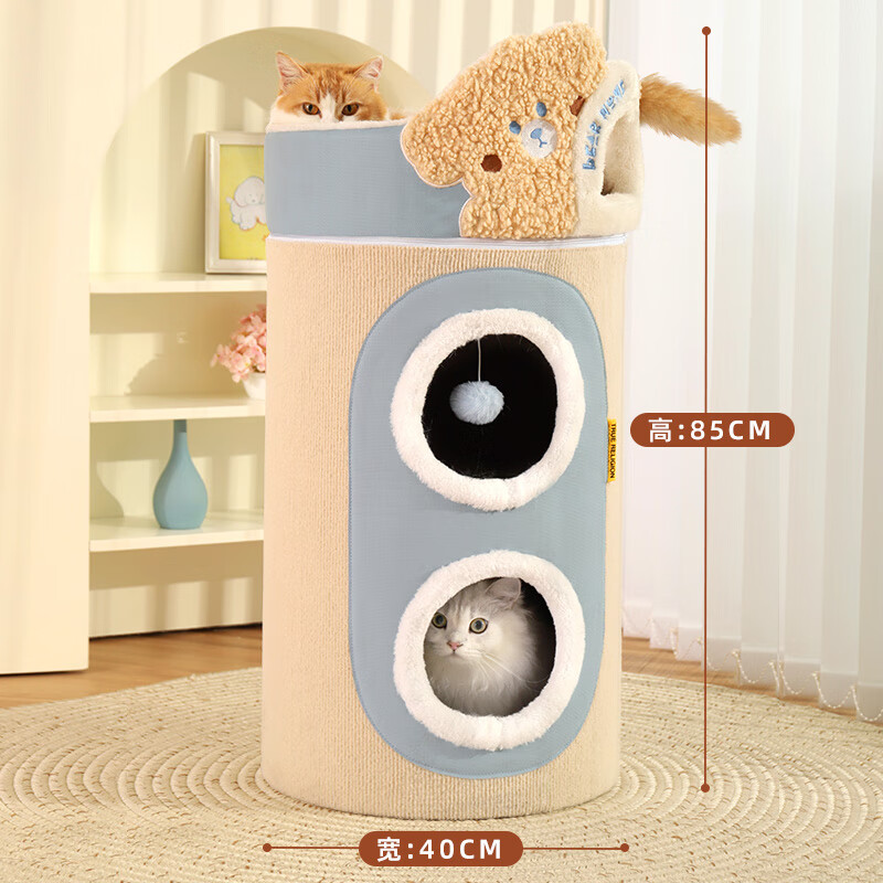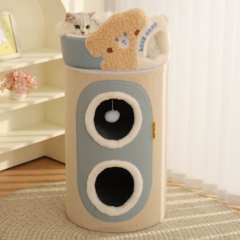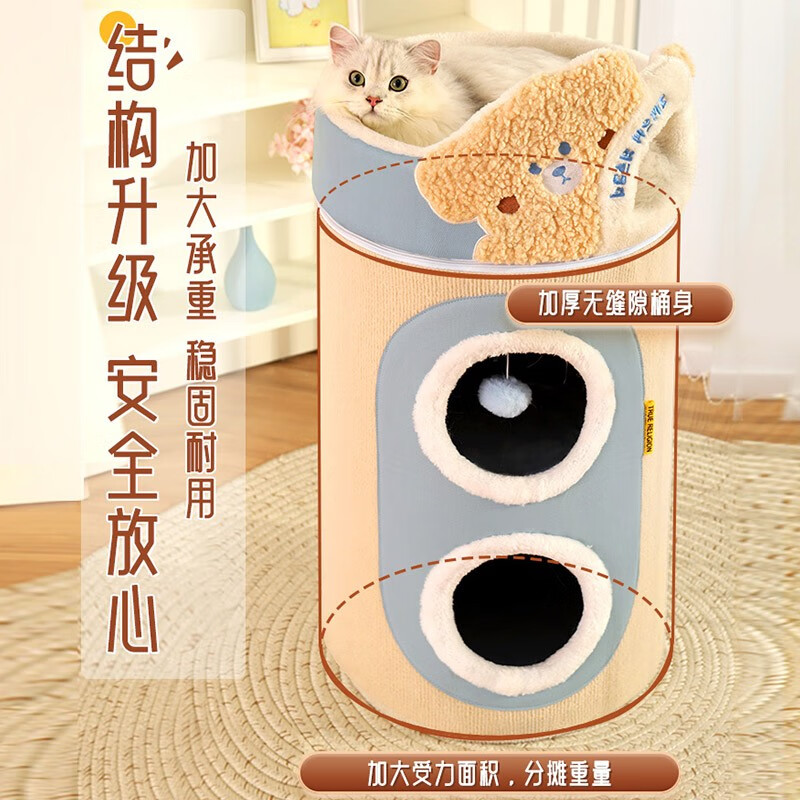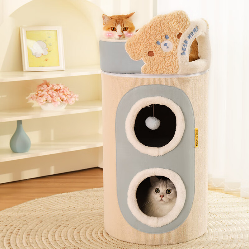 华元宠具(hoopet)猫爬架剑麻桶猫抓板一体大型猫架多功能四季通用夏季猫窝半封闭式夏天窝可抓可磨爪 新款小熊三层猫窝剑麻桶(建议12斤内-外侧可抓)