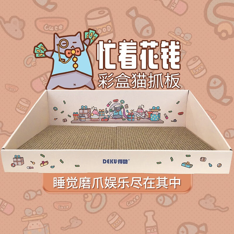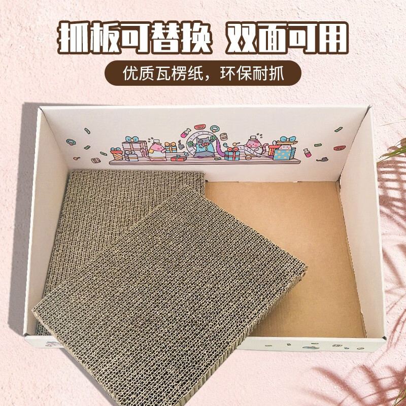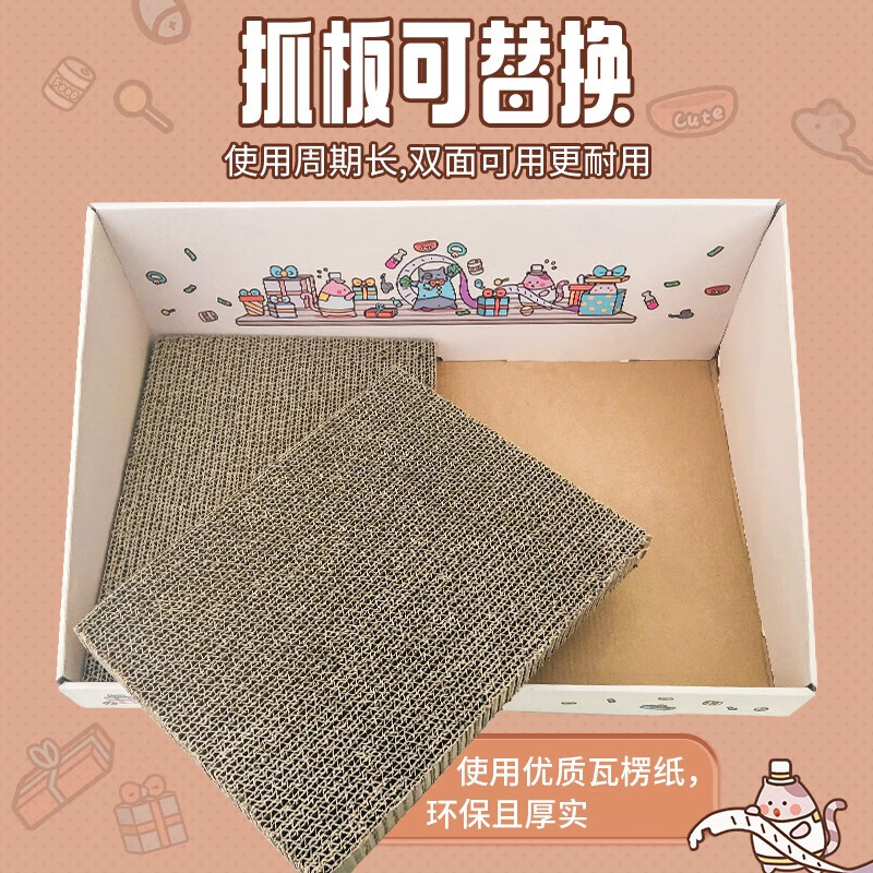 得酷 彩盒猫抓板窝猫窝猫爪板磨爪器耐磨不掉屑猫咪玩具用品大号 忙着花钱彩盒