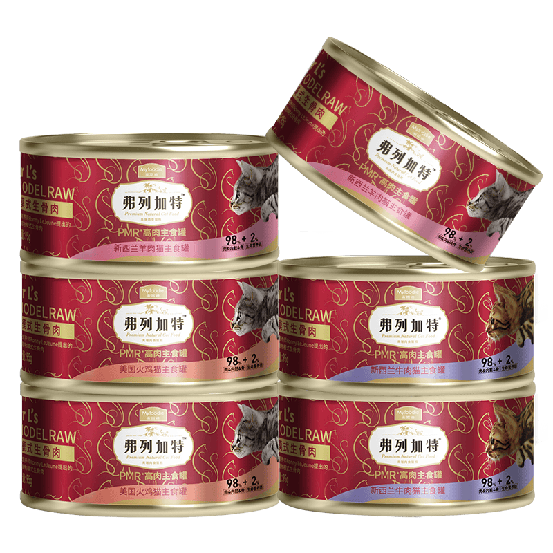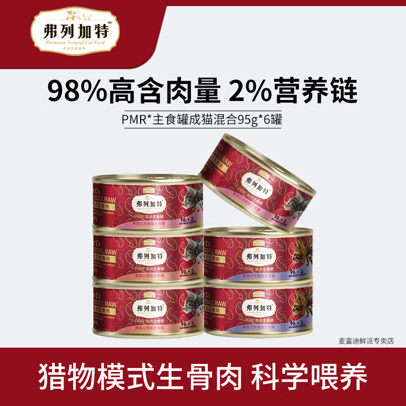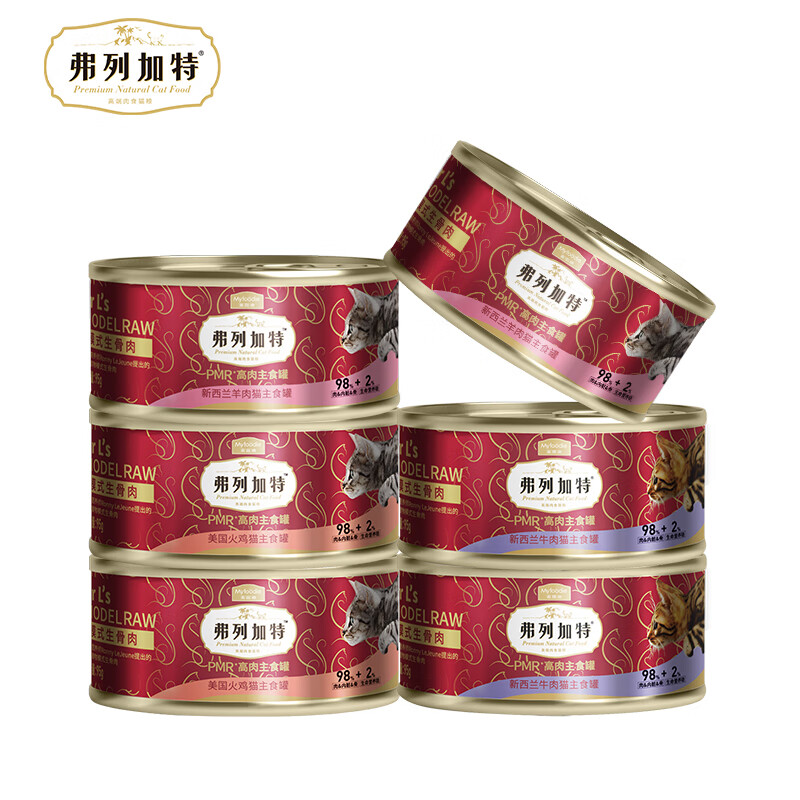 弗列加特主食猫罐头 生骨肉罐高蛋白成猫幼猫通用型猫拌猫饭湿粮 混合口味95g*6罐