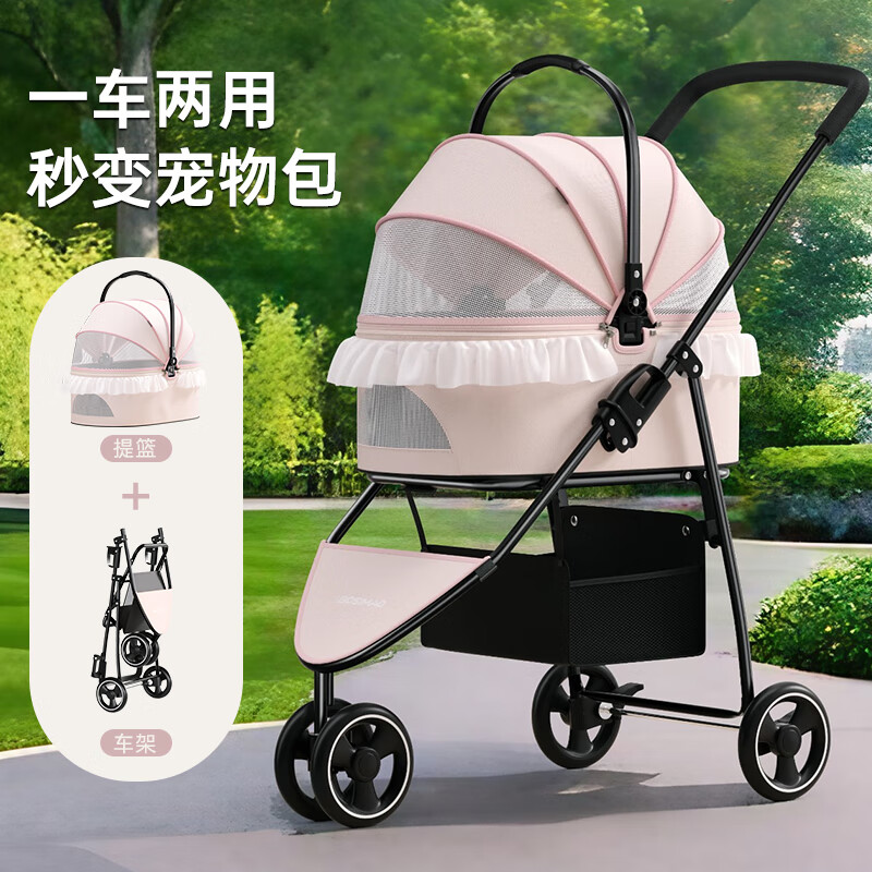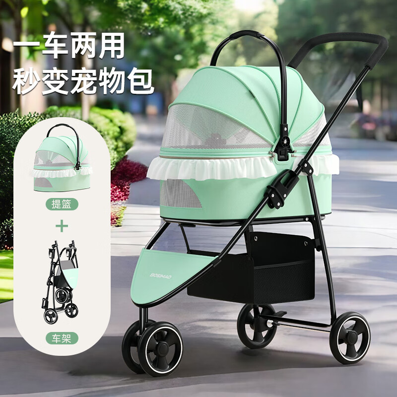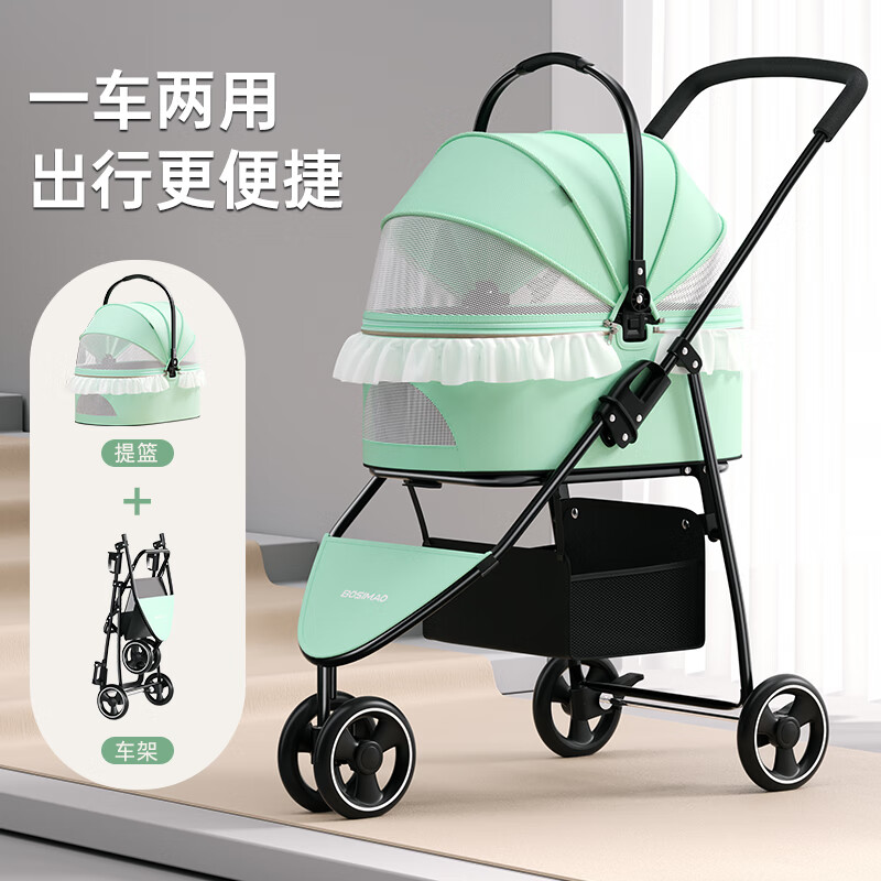 DO DO PET宠物推车小型犬可折叠分离手推车猫咪外出便携宠物车溜狗狗拉车 绿色【新品】 可分离摇篮(建议承重20斤内)