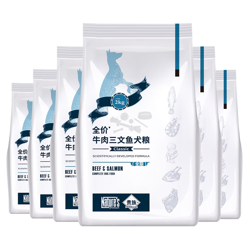 贵族狗粮 牛肉三文鱼成犬粮全犬种通用全价犬粮 12kg(2kg*6包)