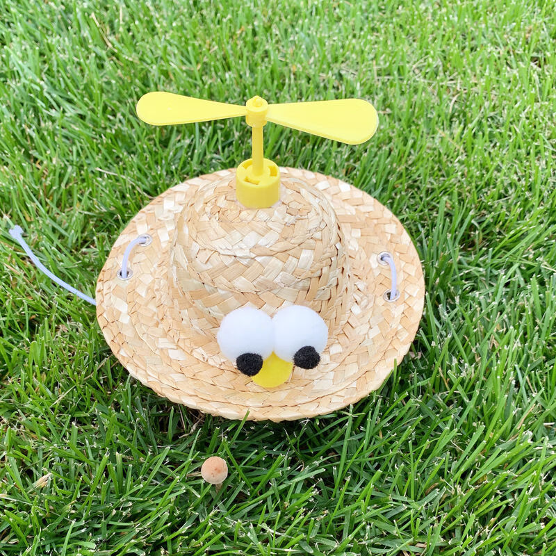 猫咪帽子宠物狗狗头饰可爱竹蜻蜓草帽生日帽网红卖萌搞笑拍照帽子 竹蜻蜓草帽【黄色】 小号