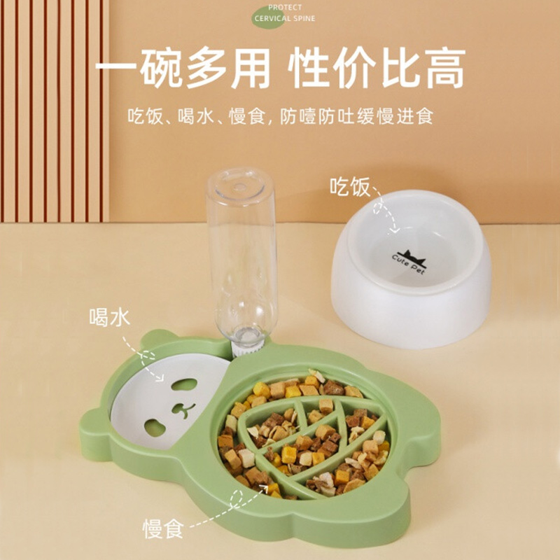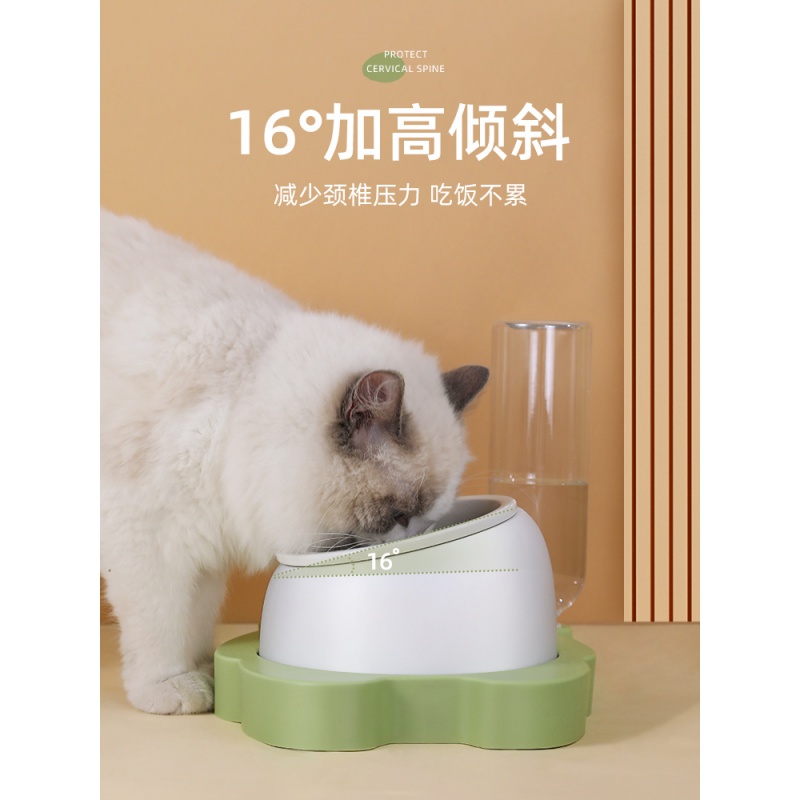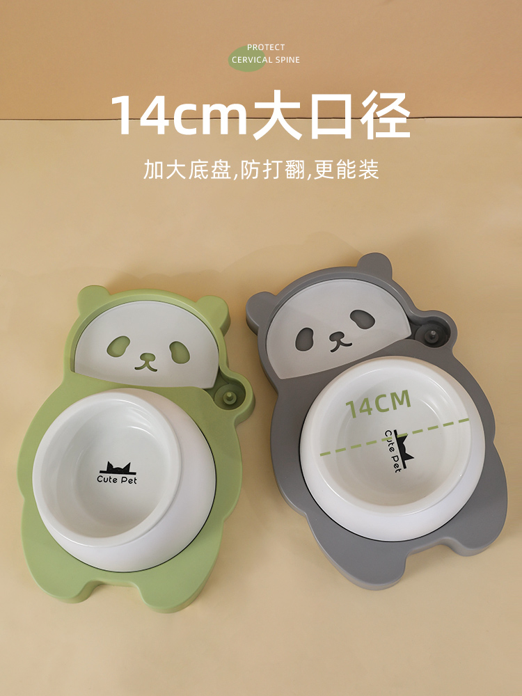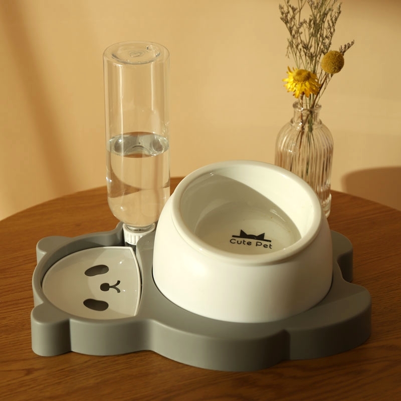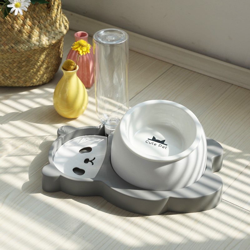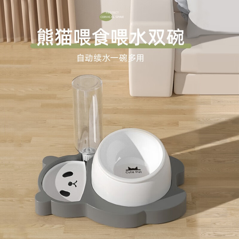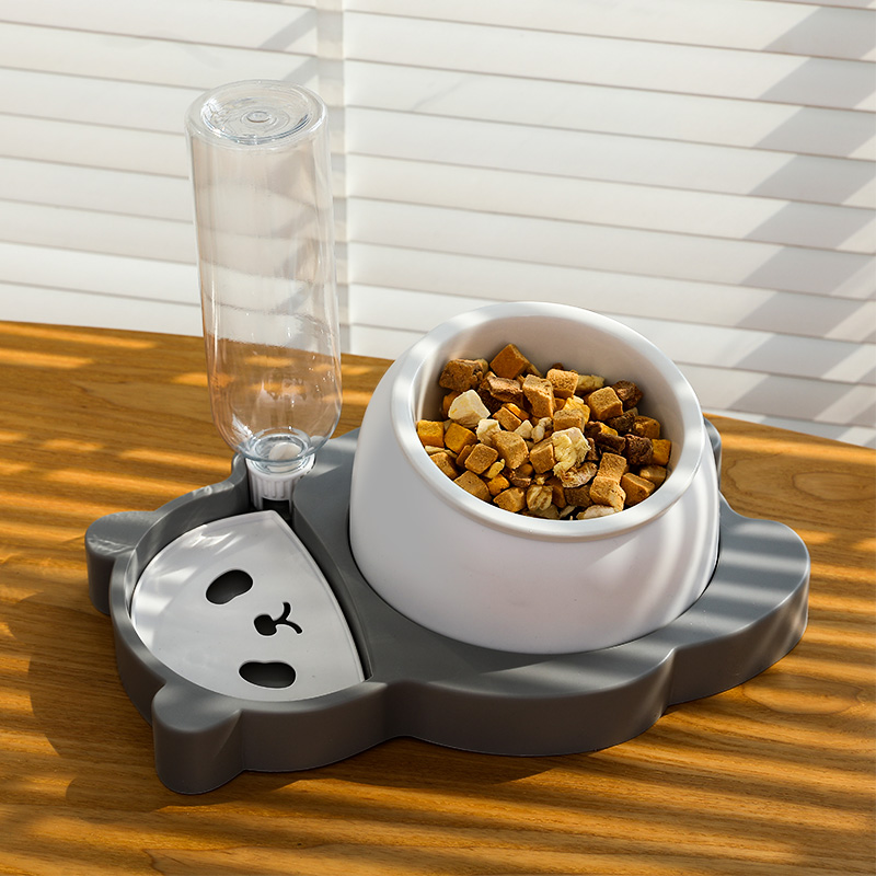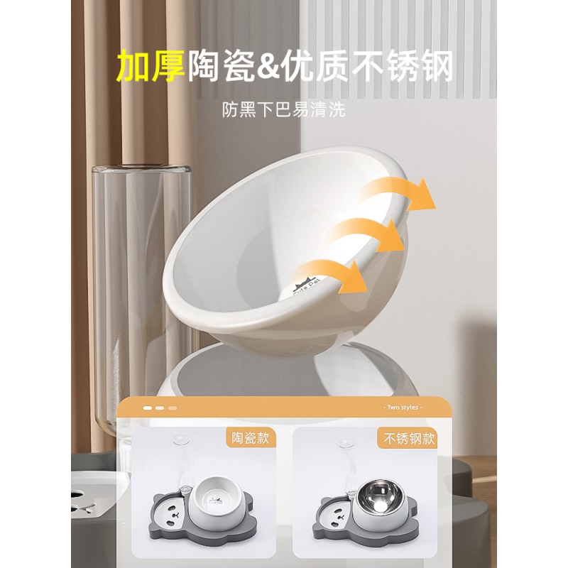 hoopet猫碗陶瓷猫咪饮水机狗猫食盆猫碗高脚护颈不锈钢自动续水猫粮碗大容量防打翻猫水机宠物双碗喂食 高级灰(陶瓷款)