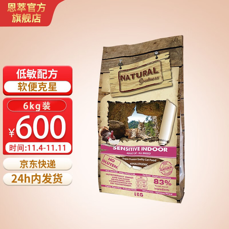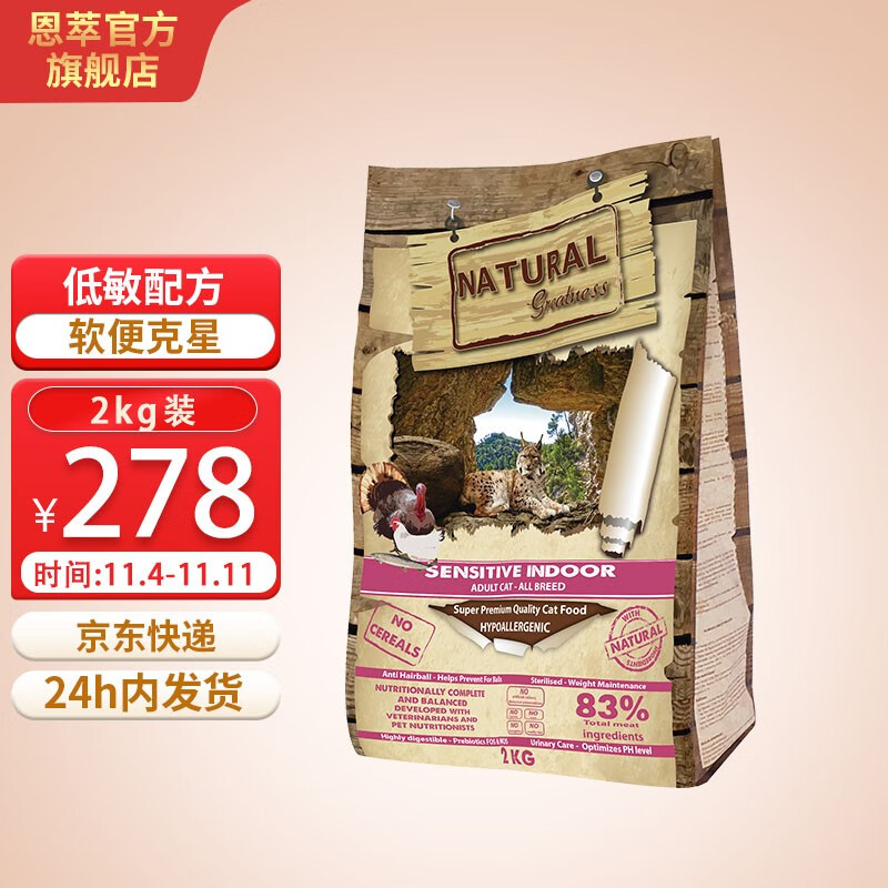 Natural 恩萃 NG室内低敏猫粮 (粉鸡猫粮)幼成猫全价绝育英短蓝猫布偶 室内低敏猫粮2公斤装