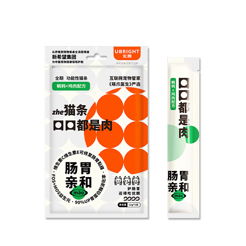 优朗零食猫条猫零食纯肉无添加零淀粉零胶猫条鸡肉鹌鹑味猫条12g*5支