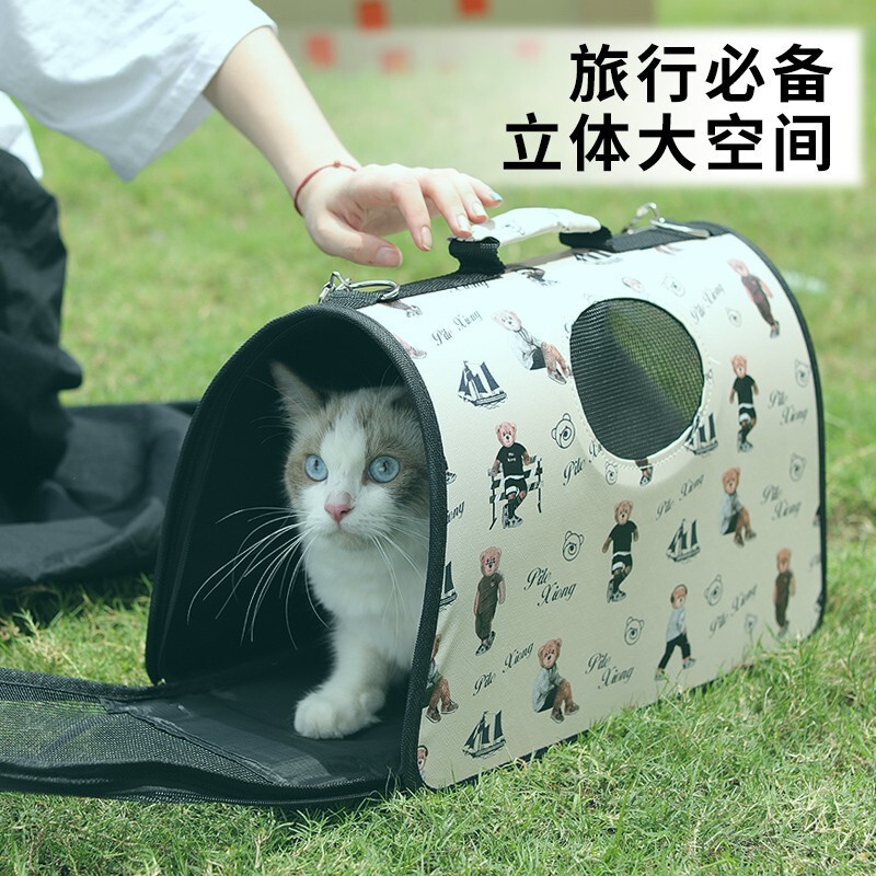 KimPets宠物包猫包狗包外出便携手提斜挎单肩乘车猫咪背包宠物用品太空舱 便携单肩日常款—米色小熊