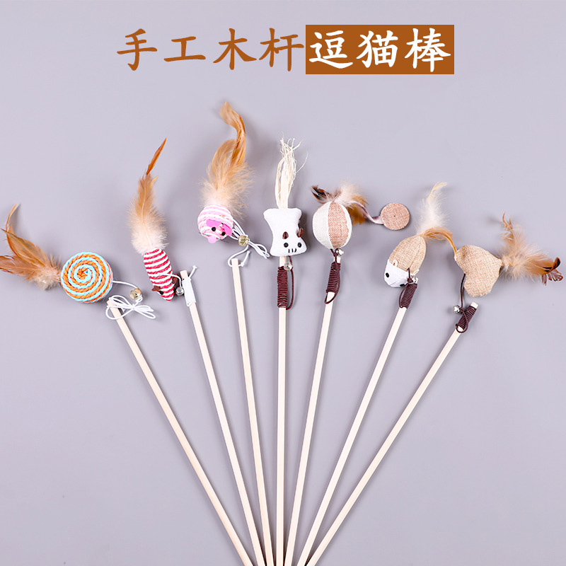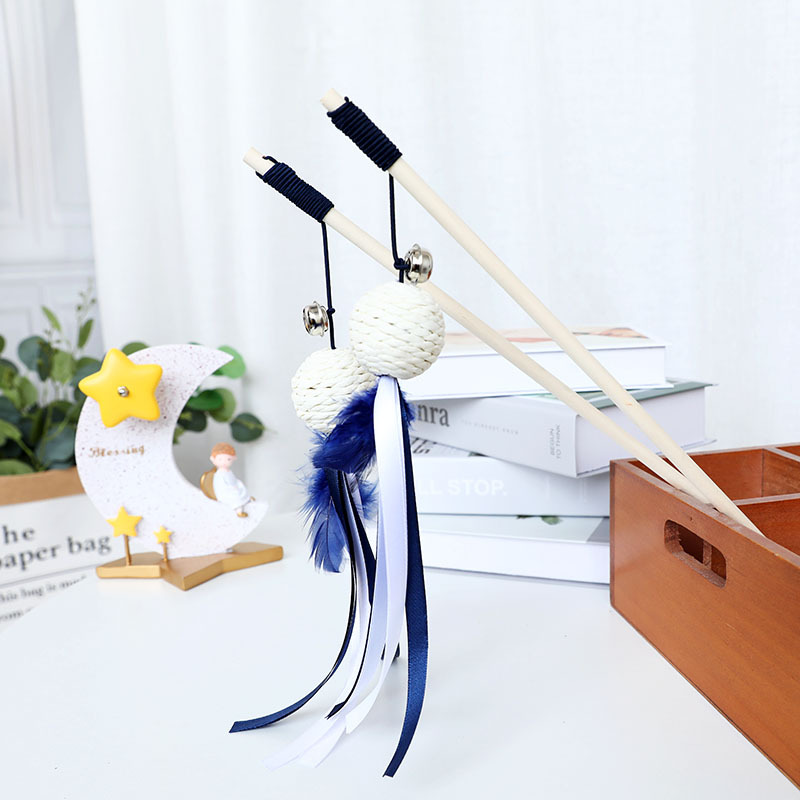 大猫日记 猫咪玩具逗猫棒逗猫神器木质老鼠铃铛猫猫宠物用品小猫羽毛耐抓咬 木杆蓝流苏球