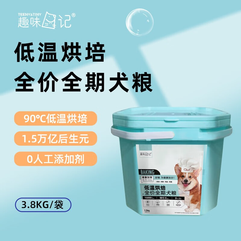 趣味日记 趣味日记狗粮幼犬粮低温烘焙成犬专用粮泰迪比熊营养3.8公斤桶装 低温烘培 全价全期犬粮3.8kg