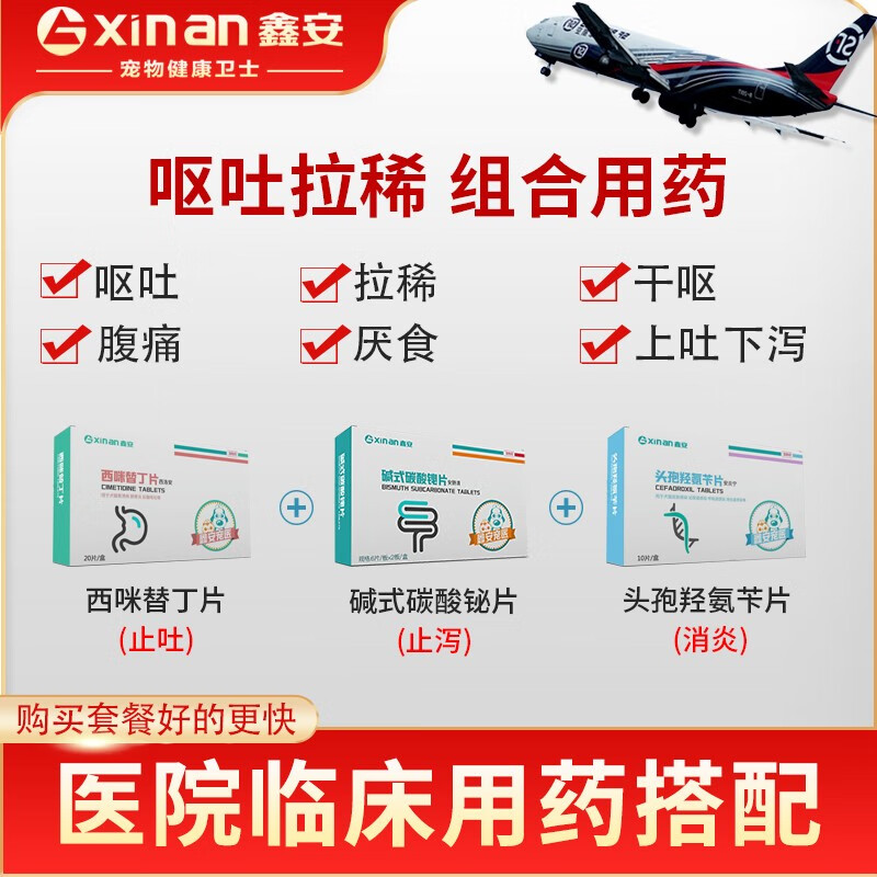 鑫安狗狗吐黄水白沫干呕幼猫咪呕吐拉稀小宠物止吐药犬肠胃西丁片 套餐三:西咪替丁 碱式碳酸铋 头孢