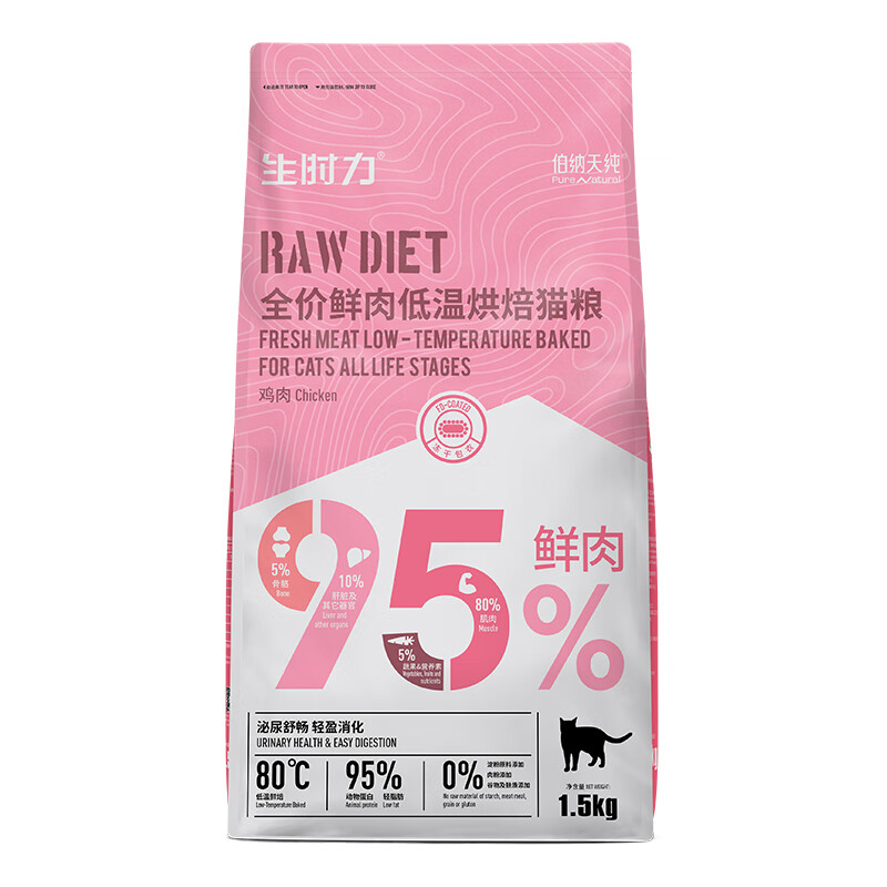 伯纳天纯猫粮生时力0谷全阶段鲜肉低温烘焙猫粮成猫幼猫鸡肉配方宠物猫粮 低温烘培鸡肉味