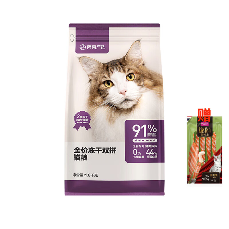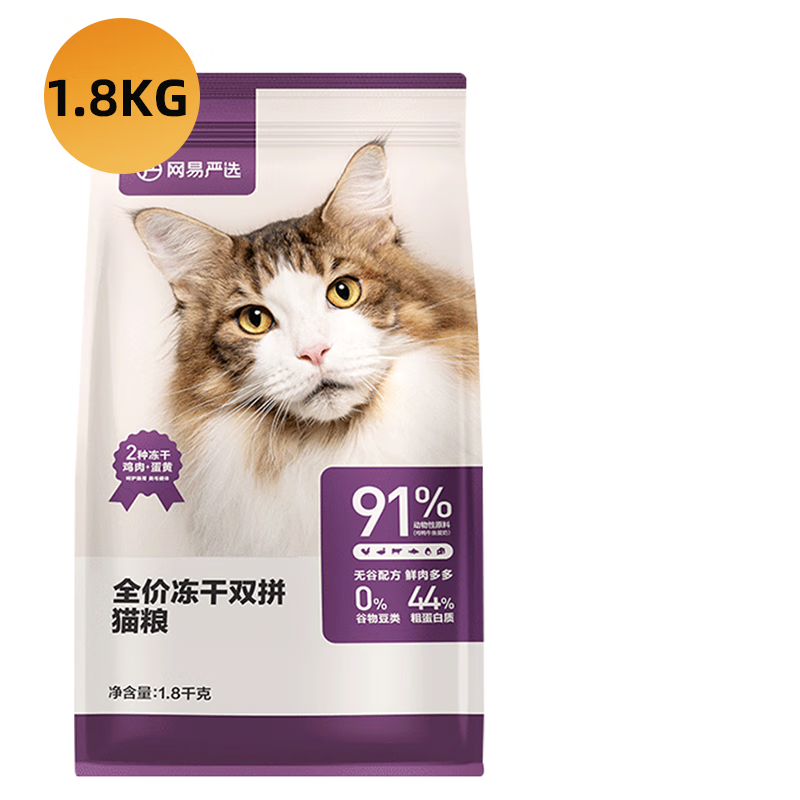 网易严选冻干双拼粮 鸡肉 蛋黄冻干粮 成猫幼猫全价无谷猫主粮 冻干猫粮1.8kg