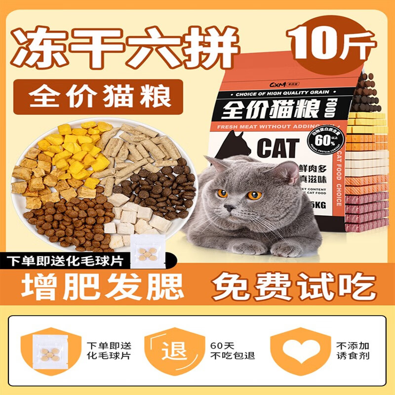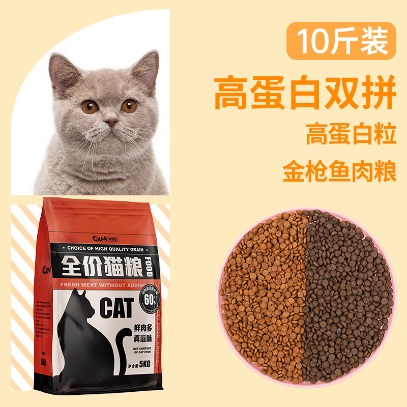 哆莫阳光(DUOMOYANGGYANG)冻干猫粮10斤装成猫幼猫专用生骨肉全价奶糕增肥发腮营养蓝猫20kg 【成猫专用】高蛋白颗粒双拼10 5kg