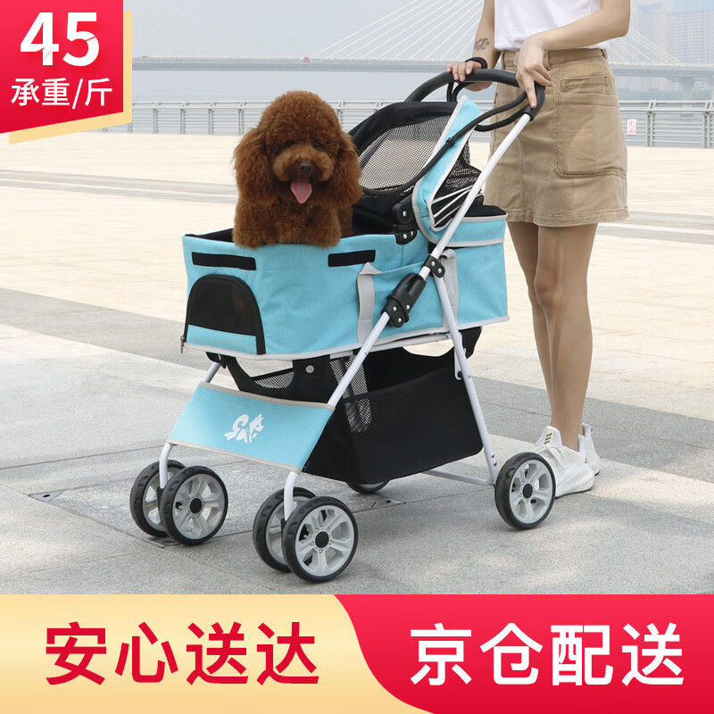 DO DO PET分离式宠物推车中小型犬猫咪外出手推车轻便折叠泰迪柯基狗狗推车 蓝色-可分离摇篮(承重45斤内)