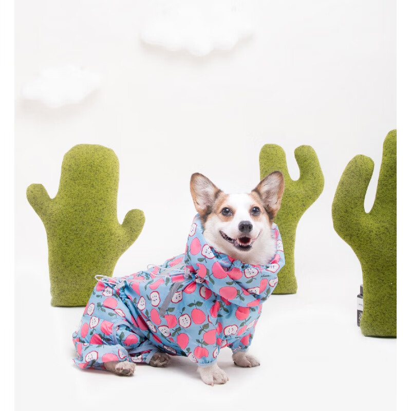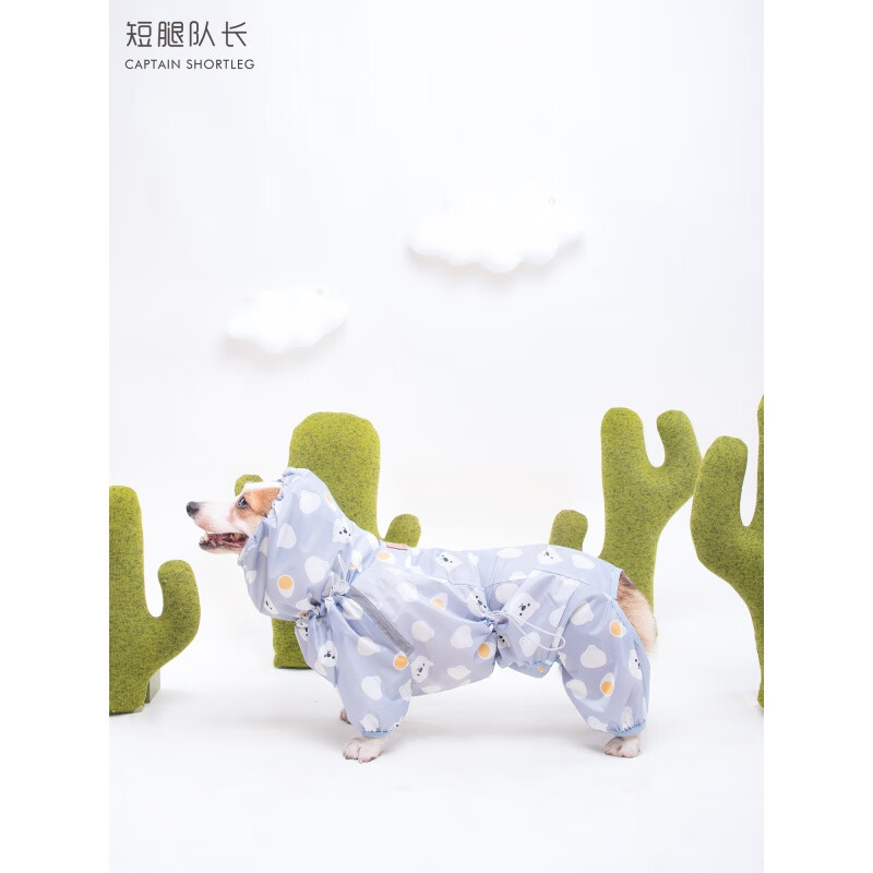 狗狗冲锋衣户外短腿队长宠物全包防水雨衣狗狗四脚雨披雨天冲锋衣服柯基柴犬金毛 蓝色/蓝苹果 L