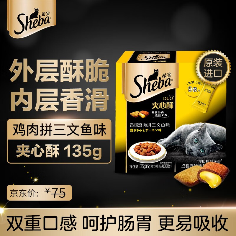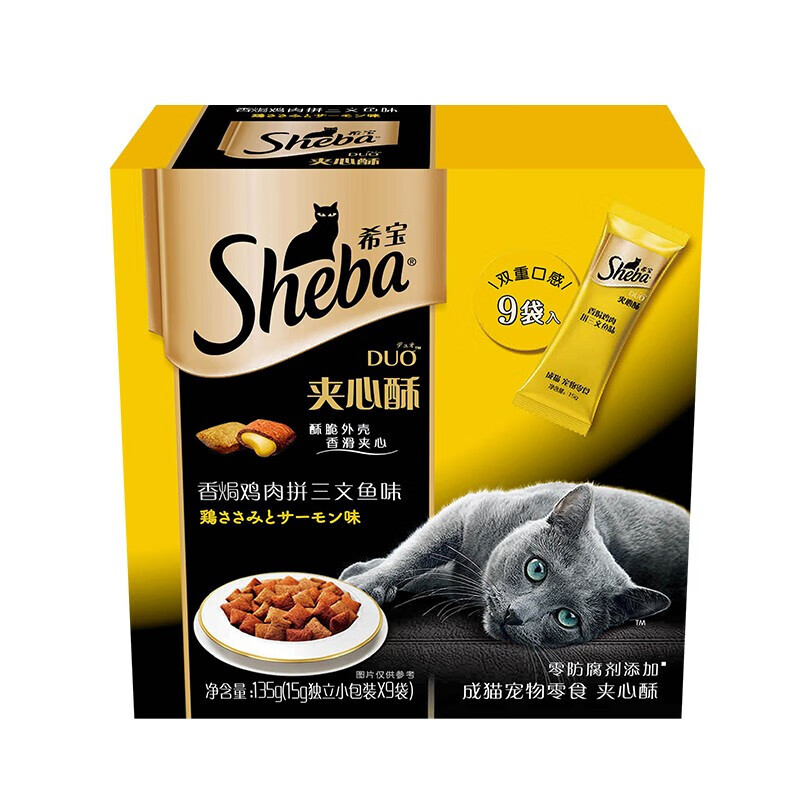 希宝(Sheba) 猫零食成猫夹心酥饼干 香焗鸡肉拼三文鱼味135g