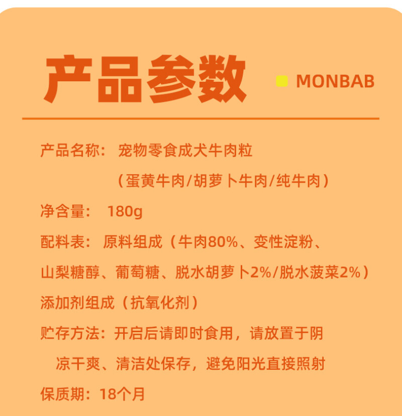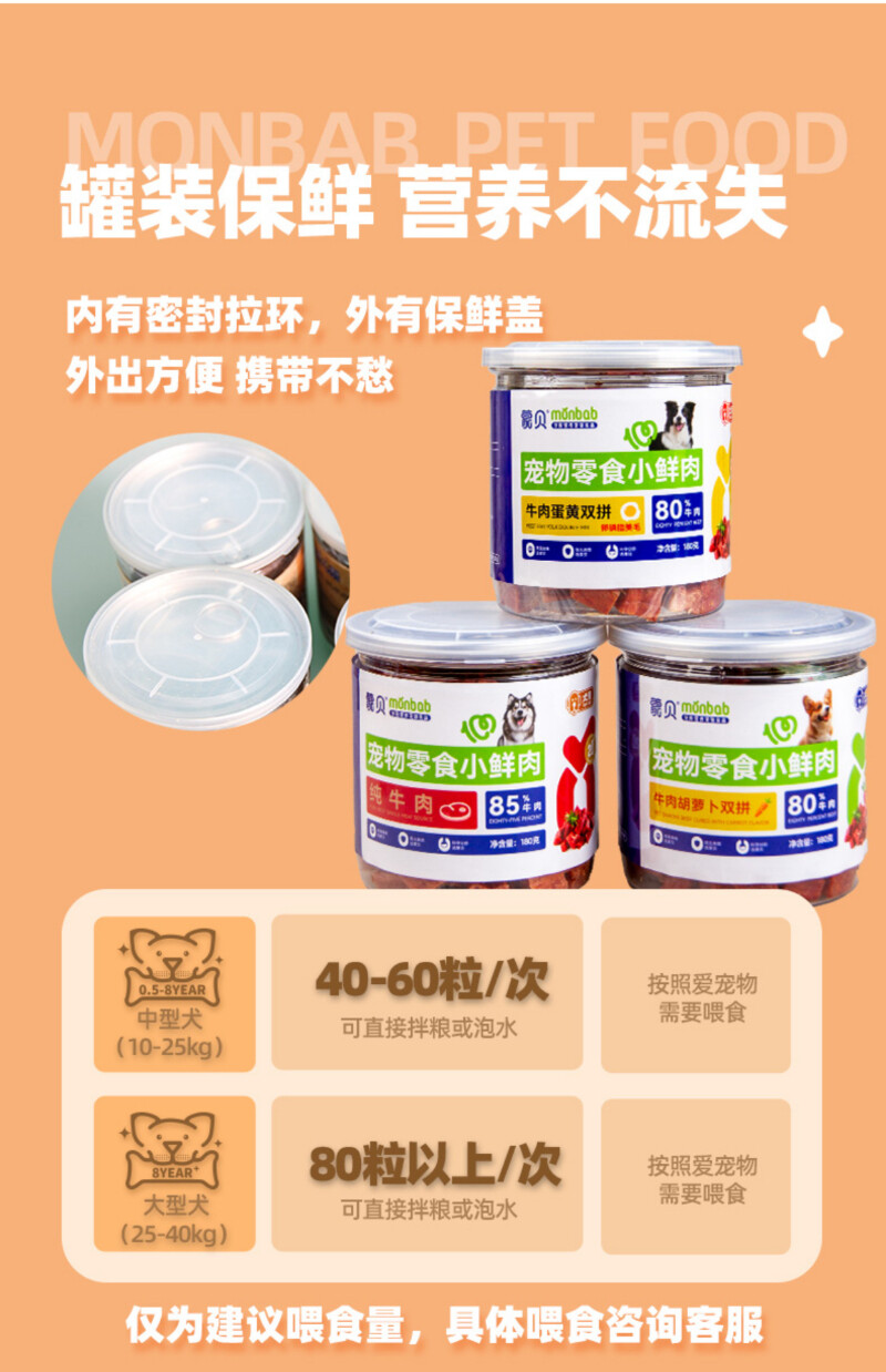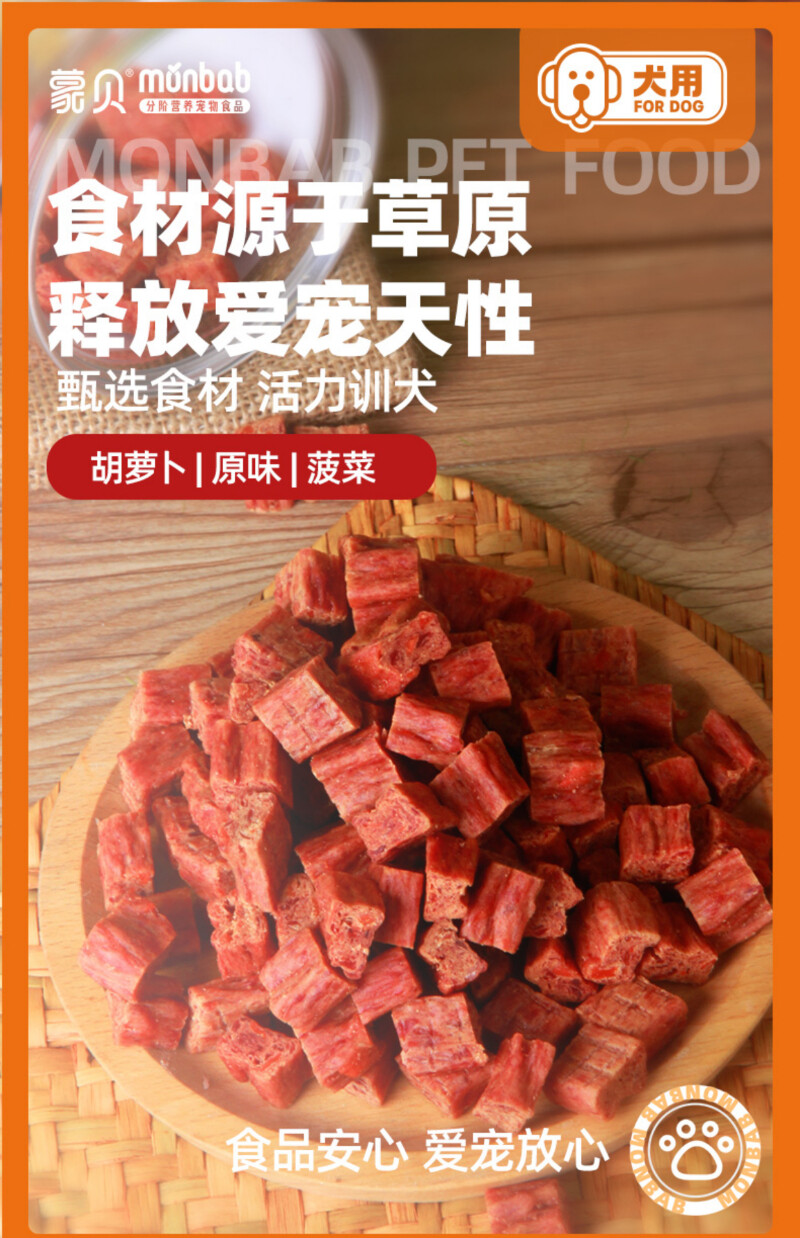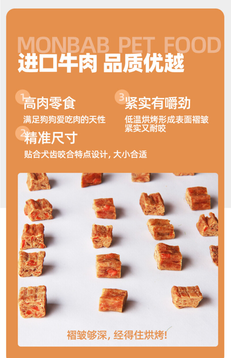 蒙贝狗零食 犬用宠物零食小鲜肉纯牛肉肉粒 180g/罐