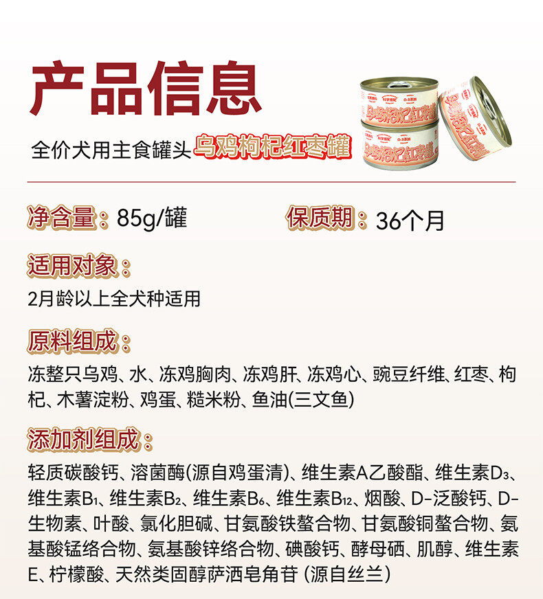 它福 全价犬用主食罐头 鸭肉苦瓜/乌鸡枸杞红枣罐85g/罐