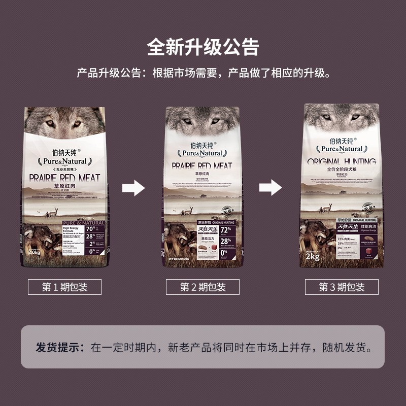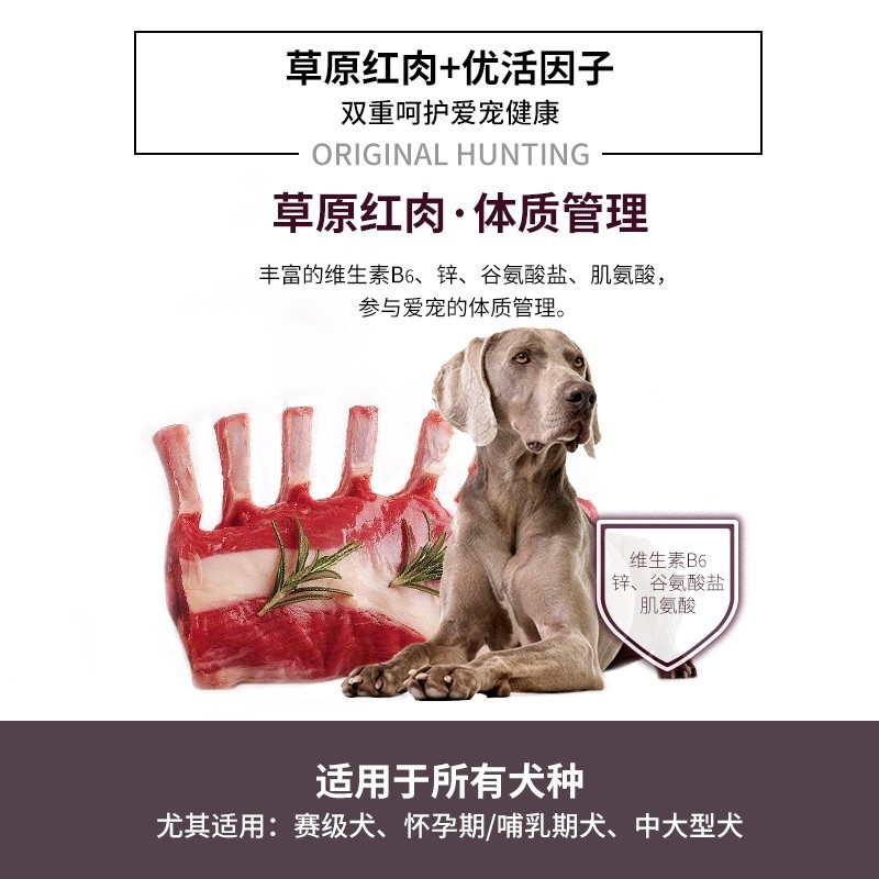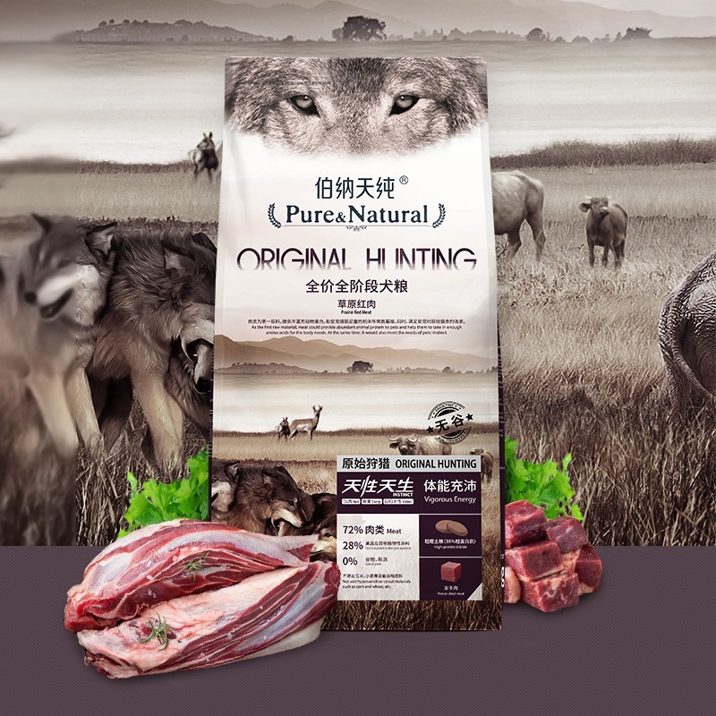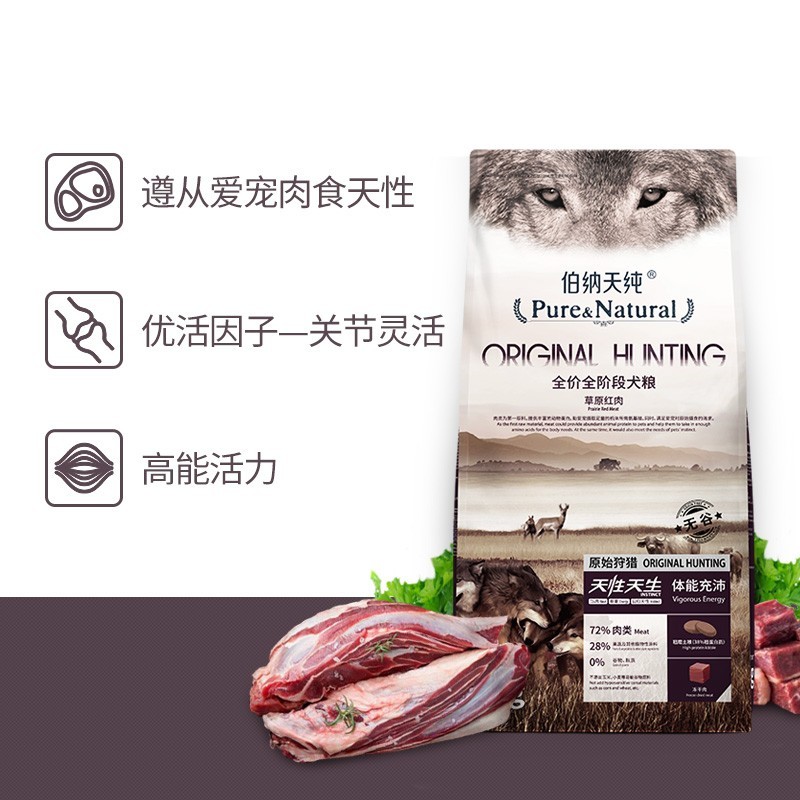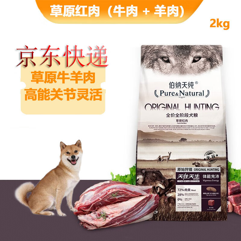伯纳天纯狗粮 原始狩猎 草原红肉犬粮体能充沛高能活力高肉含量丰富果蔬含优活因子全价全阶段天然狗粮 通用款草原红肉2kg-客服领惓