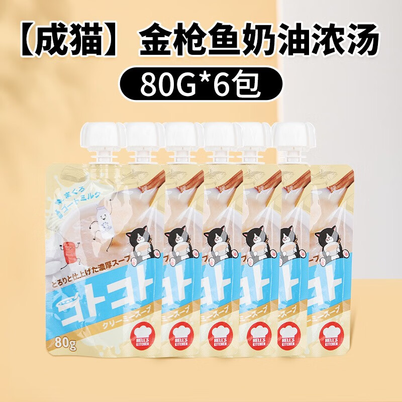 华元宠具(hoopet)地狱厨房猫零食咕噜酱金枪鱼鸡肉泥幼猫成猫增肥猫条湿粮 【成猫】金枪鱼奶油浓汤-80g*6包