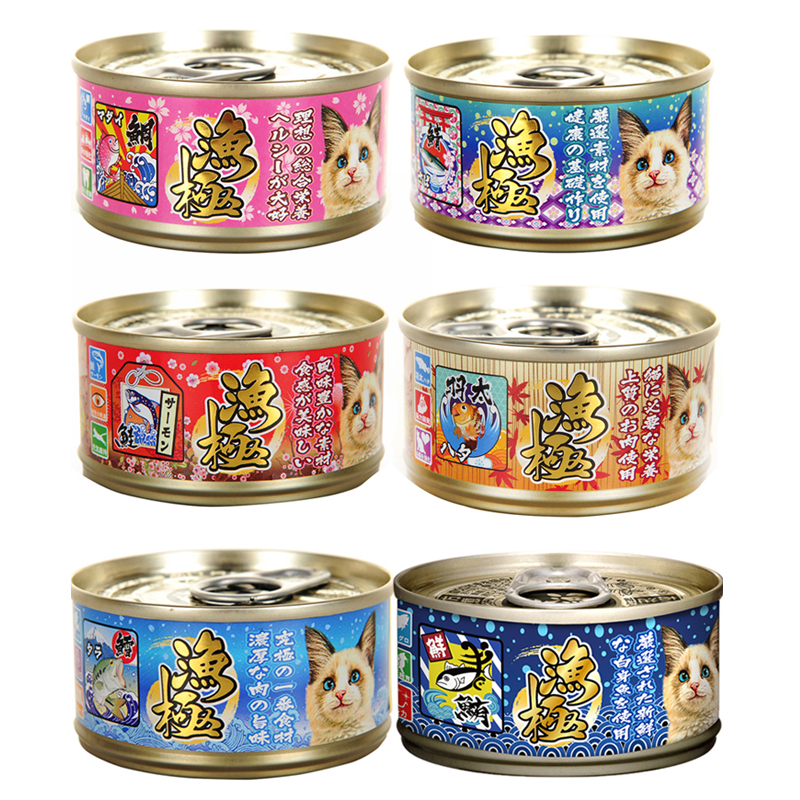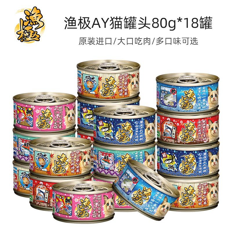 渔极猫罐头ay成幼猫罐头猫咪湿粮宠物猫咪零食餐盒. 现有口味混搭80g*18罐