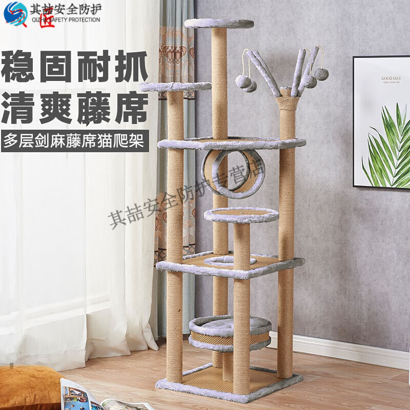 大型藤席剑麻绒布四季猫爬架猫跳台猫抓柱猫咪玩具猫抓板猫别墅窝 藤席款4558T银灰色