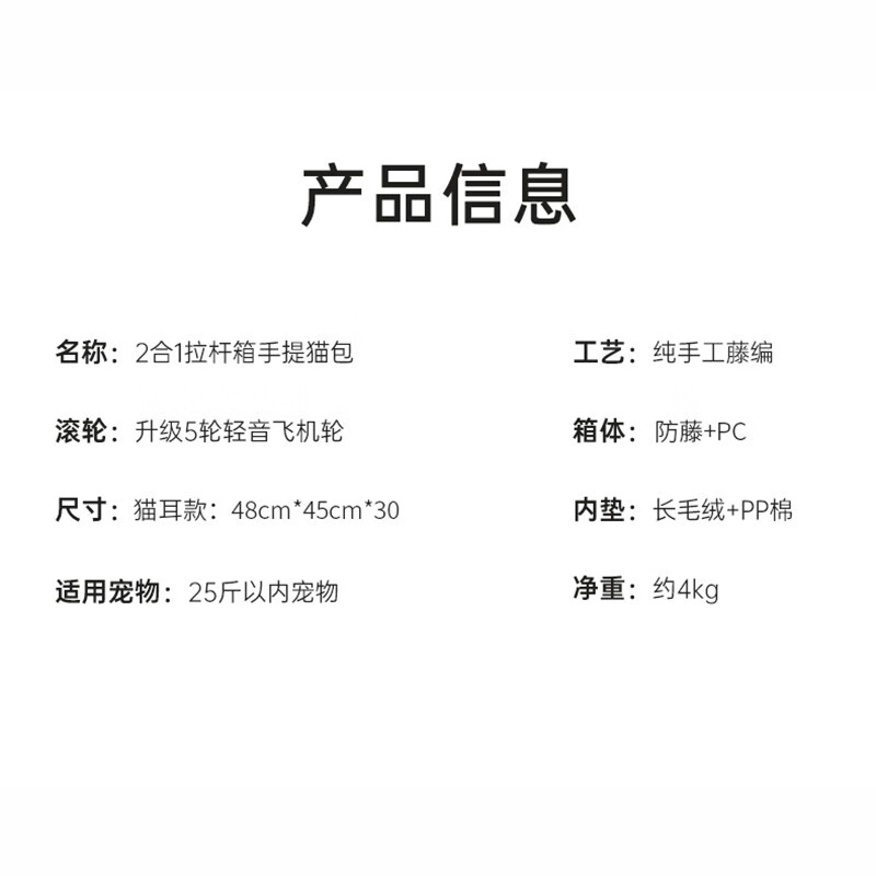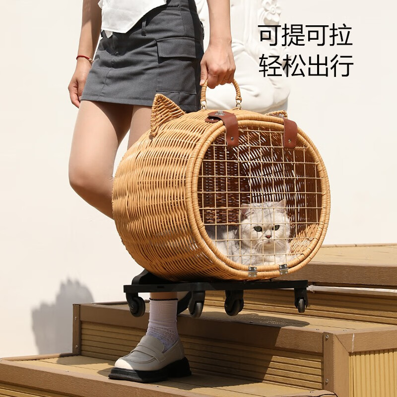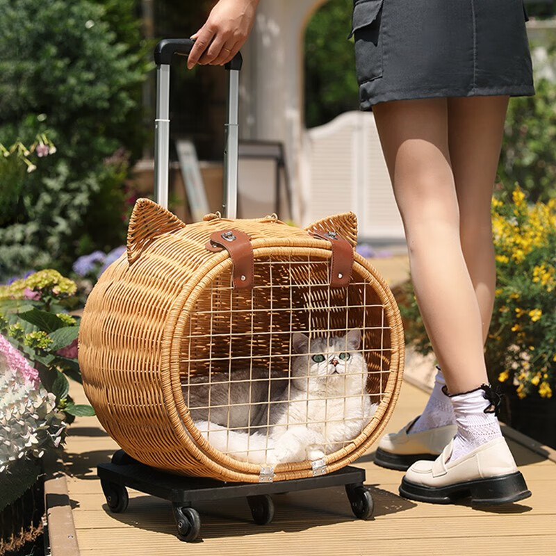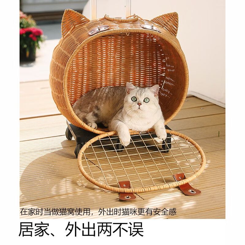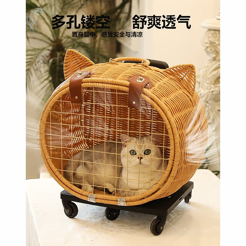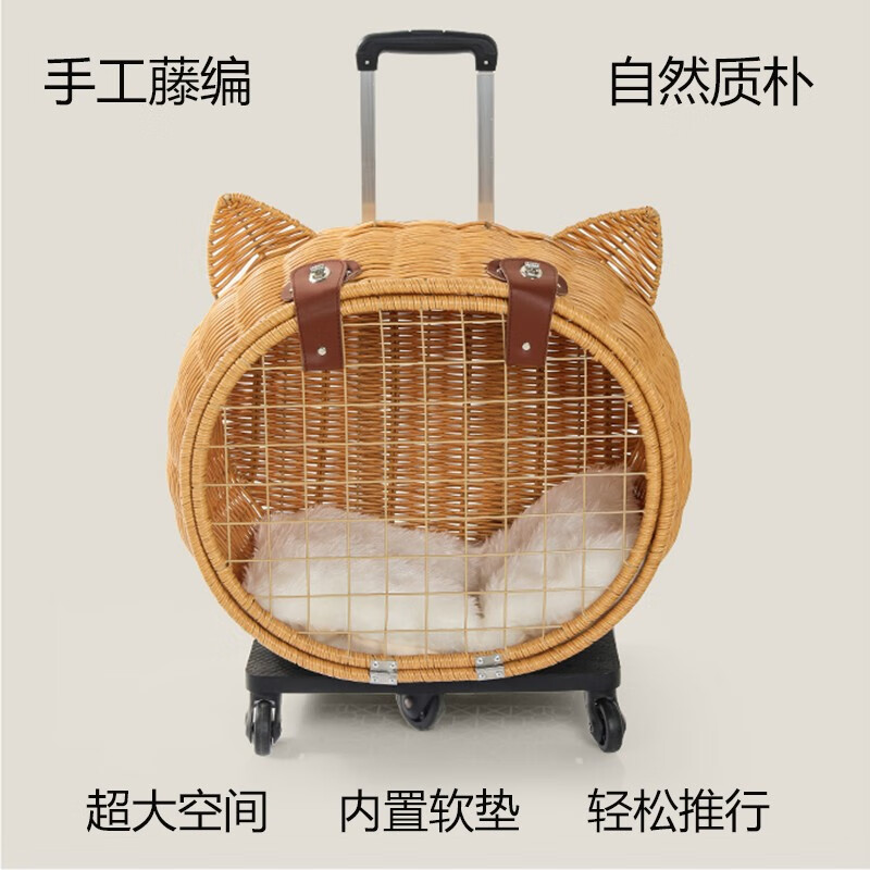 沄筱宠物拉杆箱猫包外出便携航空箱藤编猫窝猫咪小狗狗宠物小推车透气 猫头型拉杆箱[25斤以内]