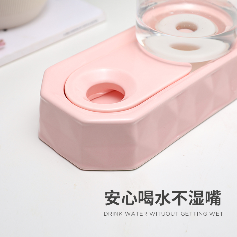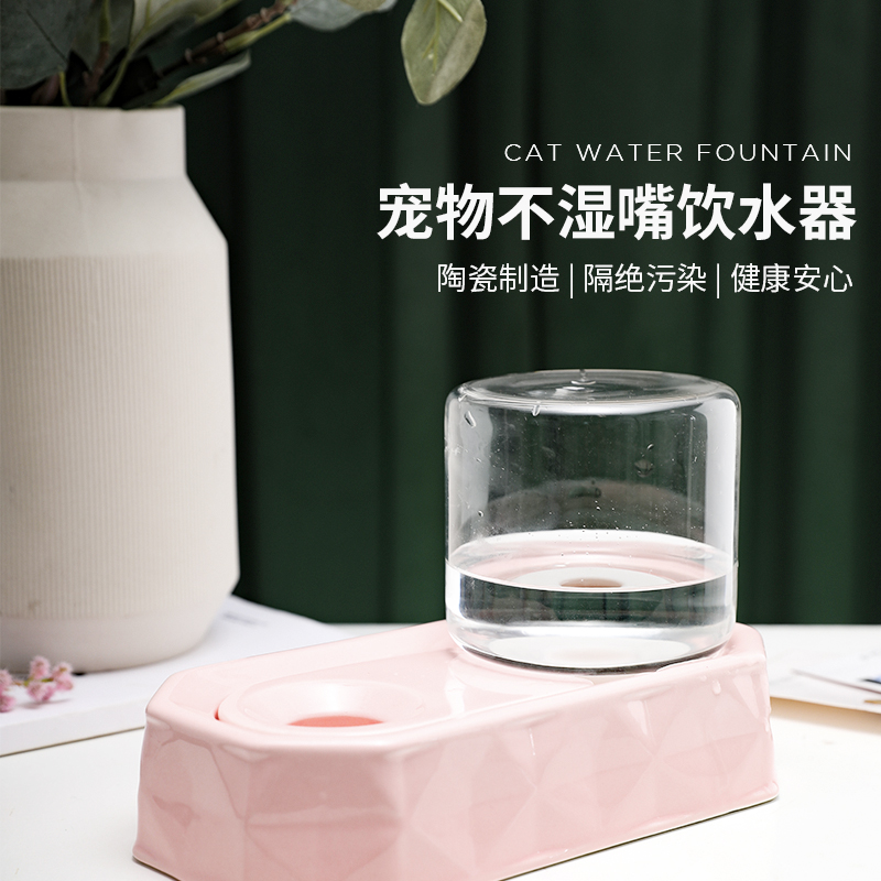佩格小猫陶瓷宠物饮水器 不湿嘴扁脸猫防湿下巴猫咪水碗 猫狗通用饮水机 粉色