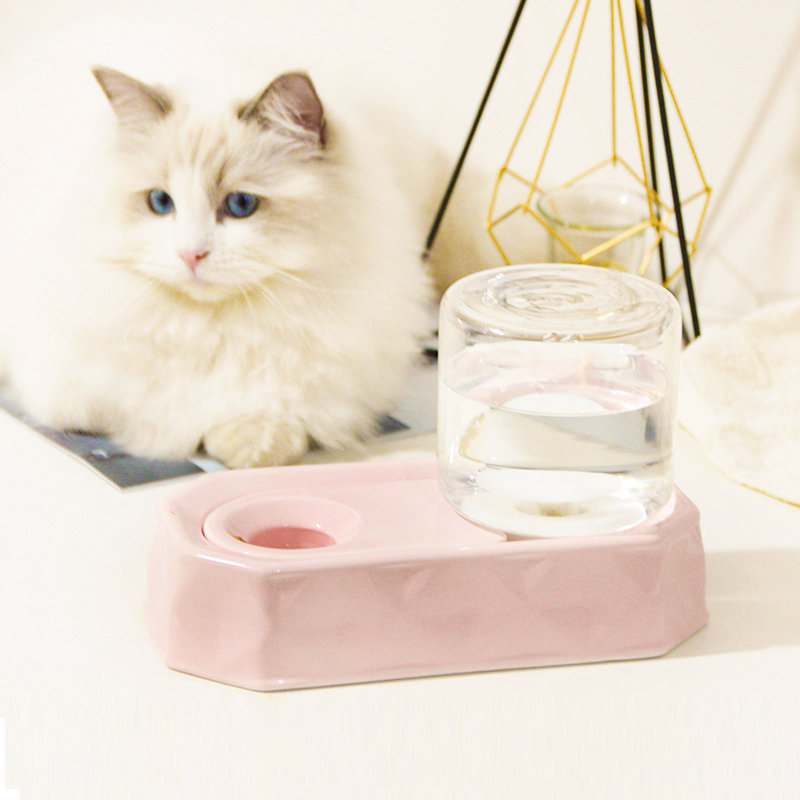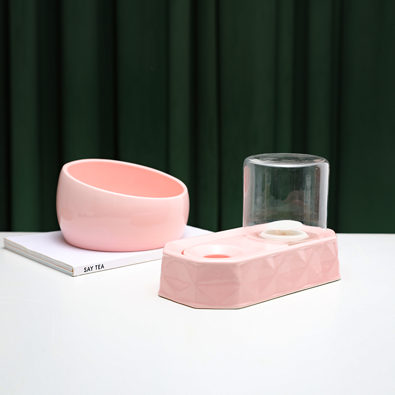 猫碗双碗自动饮水猫咪陶瓷水碗斜口宠物碗狗碗喝水猫粮盆食盆饭碗