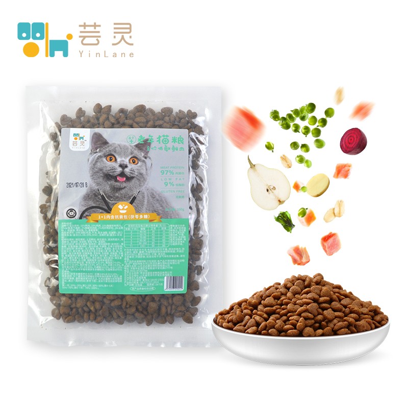 芸灵 猫粮全价全种6岁以上成老年猫粮2kg搭配茯苓多糖延缓衰老保持健康活力高钙低脂低敏鲜肉均衡营养 【试吃装】成老年猫粮100g