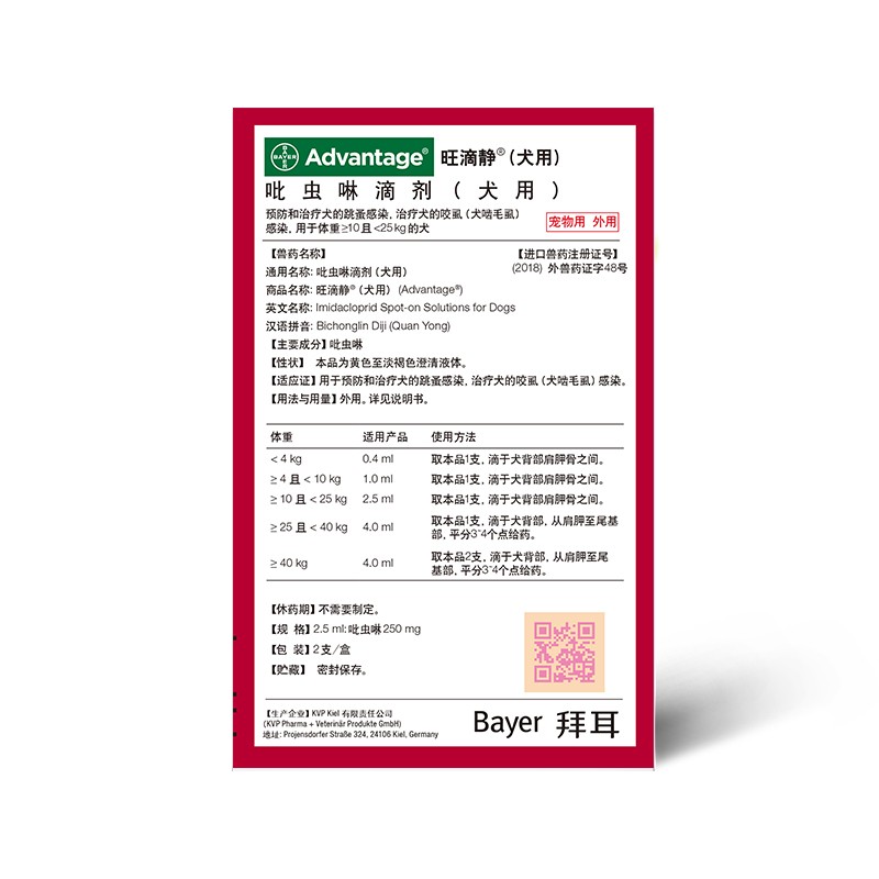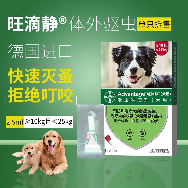 德国进口旺滴静滴剂 猫咪体外驱虫药宠物狗狗除跳蚤虱子大型犬吡虫啉杀虫幼犬猫用打虫药单支拆售 2.5ML 10~25kg犬用