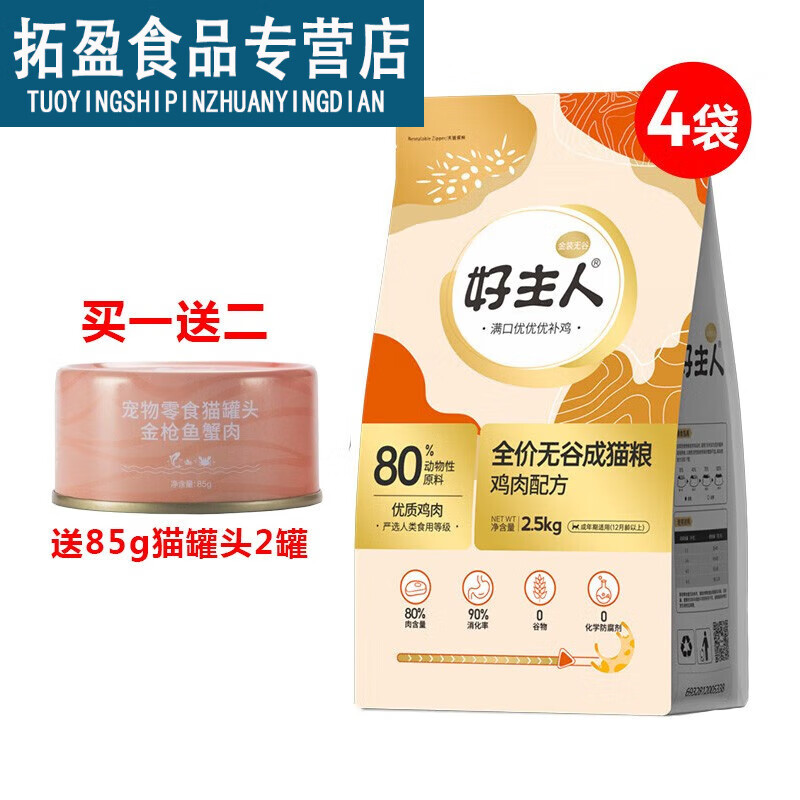 好主人(CARE)金装猫粮2.0幼猫粮高含肉量鸡肉配方高蛋白无谷全价成猫通用 【80%肉含量】成猫粮10kg20斤