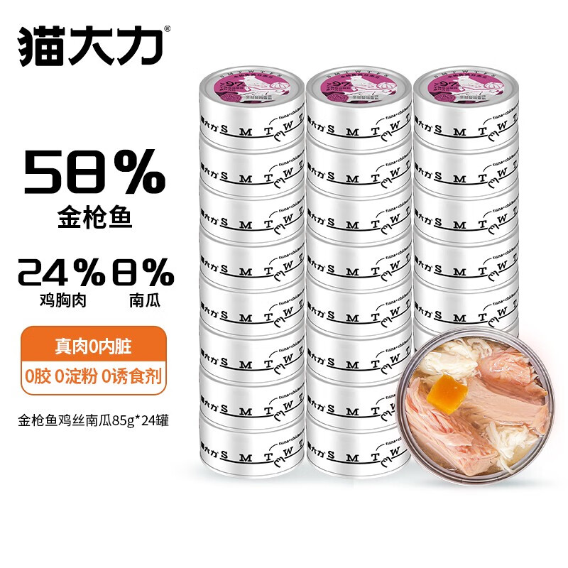 猫大力猫罐头宠物零食猫用浓汤大口肉猫湿粮成幼猫全价通用罐头营养增肥 混合口味60罐(预售)