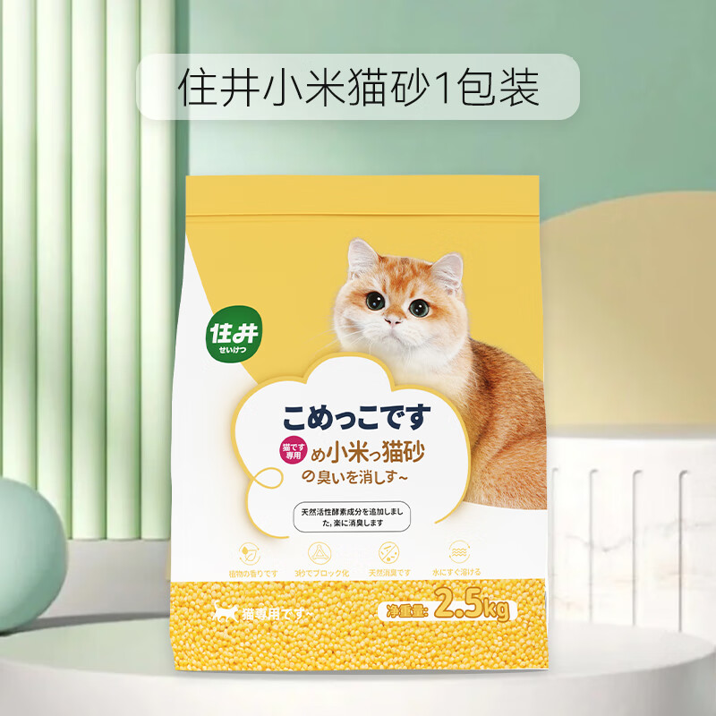 嬉皮狗(hipidog)猫砂天然植物结团吸水无尘2.5kg可溶解冲厕所除臭不沾底 1包装 淡淡奶香小米砂
