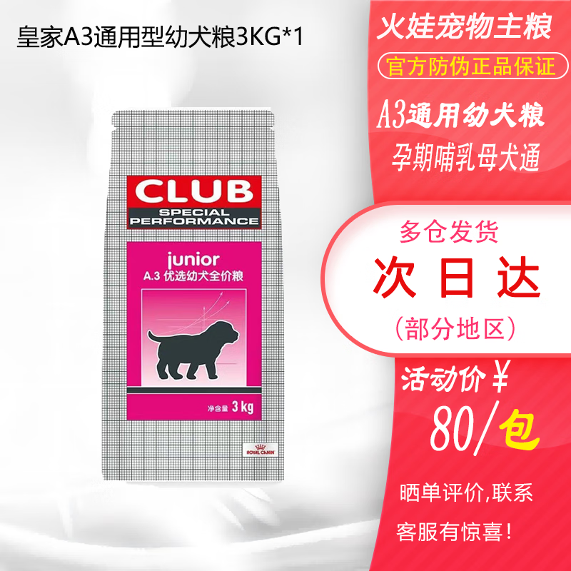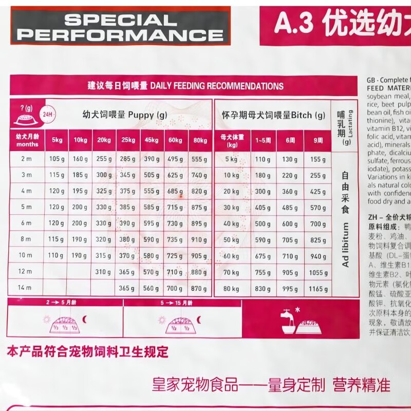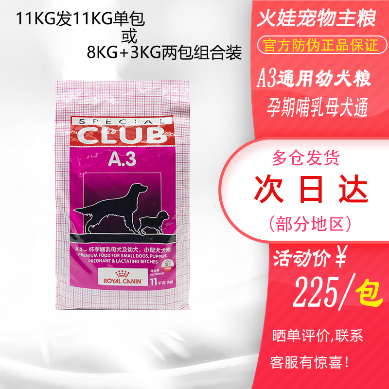 皇家狗粮A3幼犬狗粮 全犬种通用粮2-12月龄犬怀孕及哺乳期母犬 3kg(6斤) A3幼犬粮日期新鲜送货上门