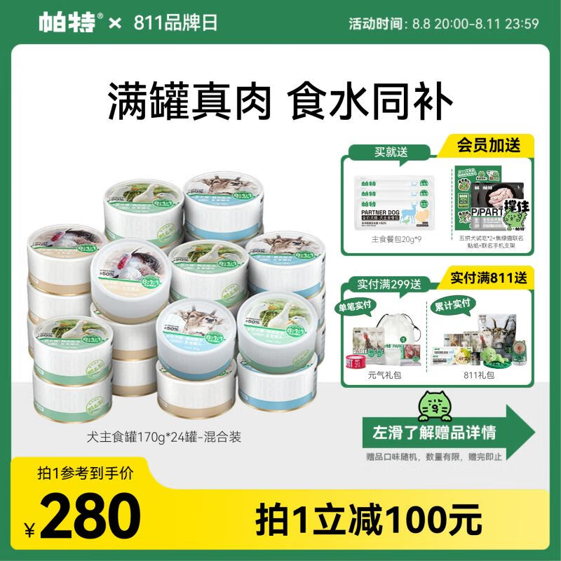 帕特狗主食罐头狗粮火鸡鸭肉狗湿粮170g*24罐【囤装】 【鸭肉 鹿肉 火鸡】*8 170g*24罐