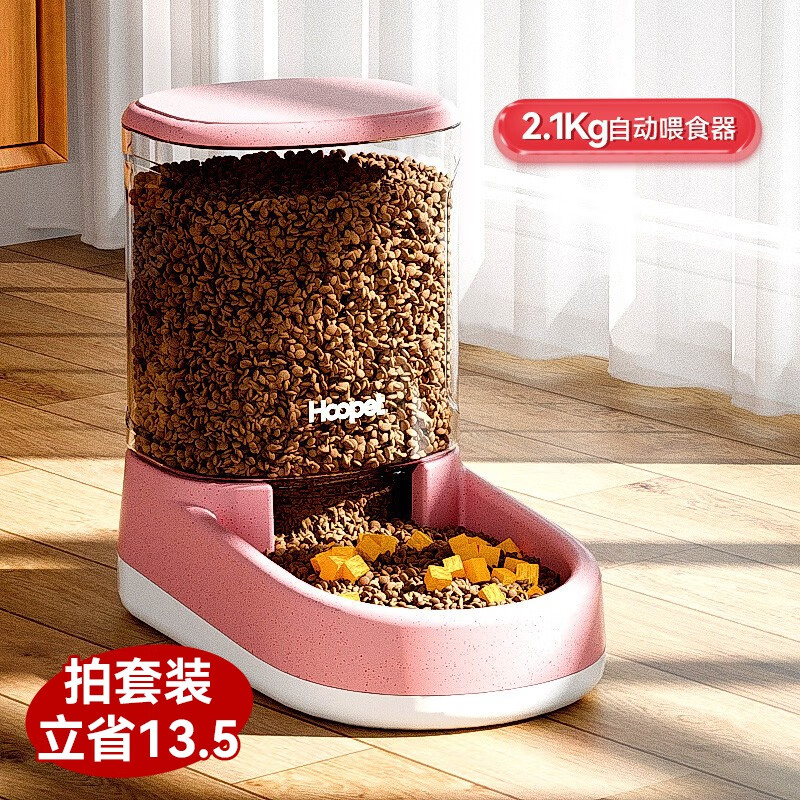 华元宠具(hoopet)超大容量宠物自动喂食器大型犬狗狗饮水机狗盆猫碗喂水猫咪投食器 喂食器3.8L超大容量 春日粉