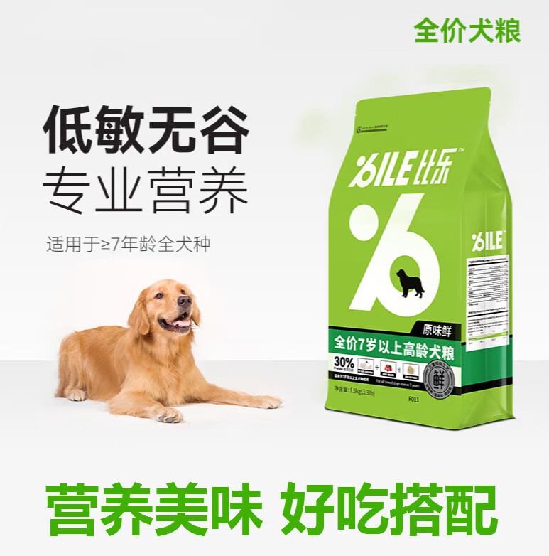 比乐犬粮原味鲜全价犬粮冻干犬粮老年犬犬粮7岁以上高龄犬粮狗粮 鲜乌鸡肉 鲜鸭肉 1.5kg