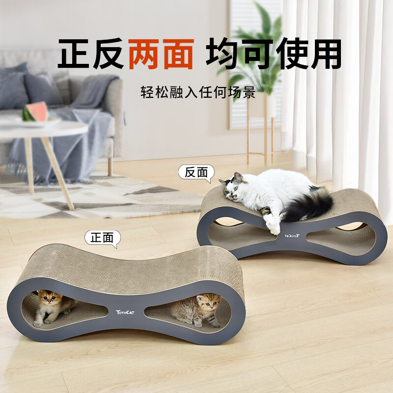 坨坨猫 超大型多功能8字猫抓板耐磨不掉屑贵妃椅猫沙发猫咪玩具 加大号8字猫抓板