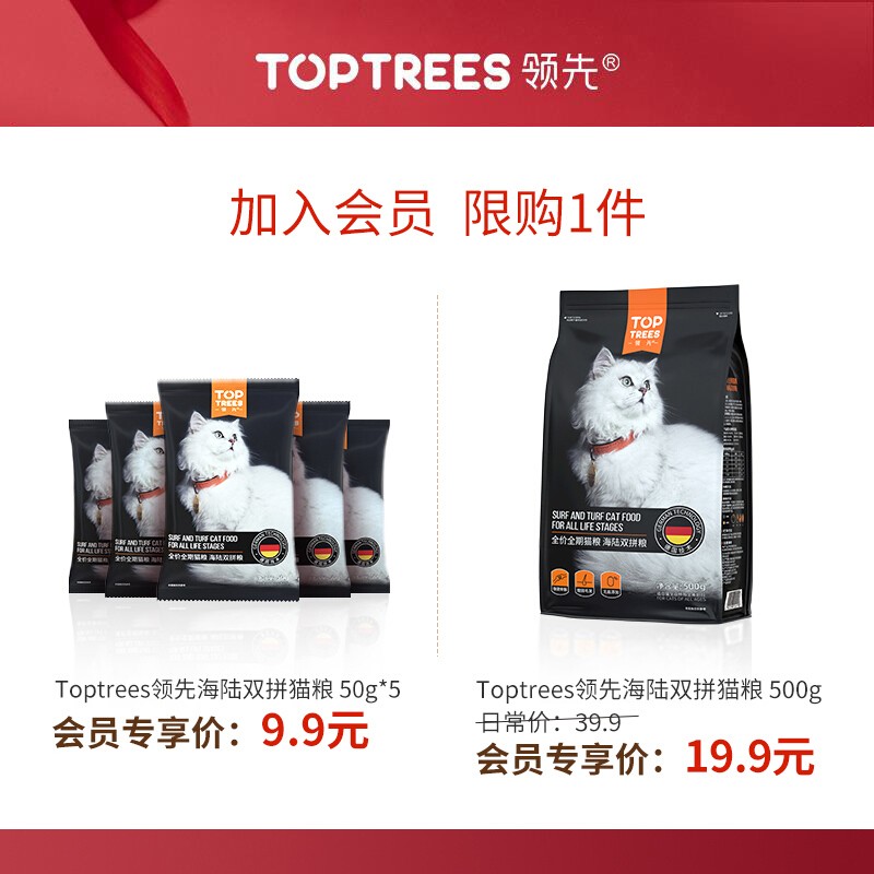 领先(Toptrees)猫粮「优质国产养胃粮」全价通用成幼猫 2个月以上布偶猫粮无谷 全价猫粮海陆双拼 试吃装50g*5包