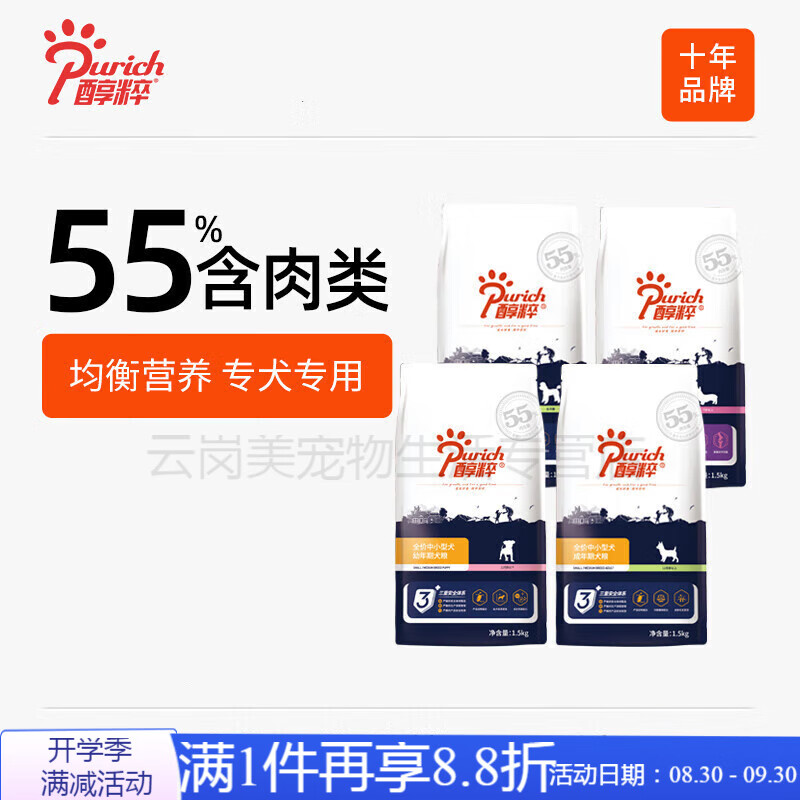 醇粹(Purich)狗粮通用型纯粹幼犬成犬贵宾老年犬专用犬粮泰迪3kg 中小型幼犬专用粮 3kg /(1.5kg/包*2)