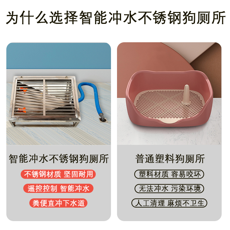蒂乐森不锈钢可冲水狗厕所小型犬防踩屎直通下水道大号宠物便盆自动清理 定制尺寸(不退不换保修)