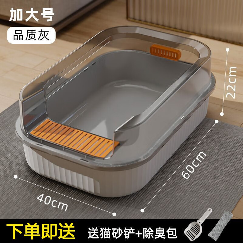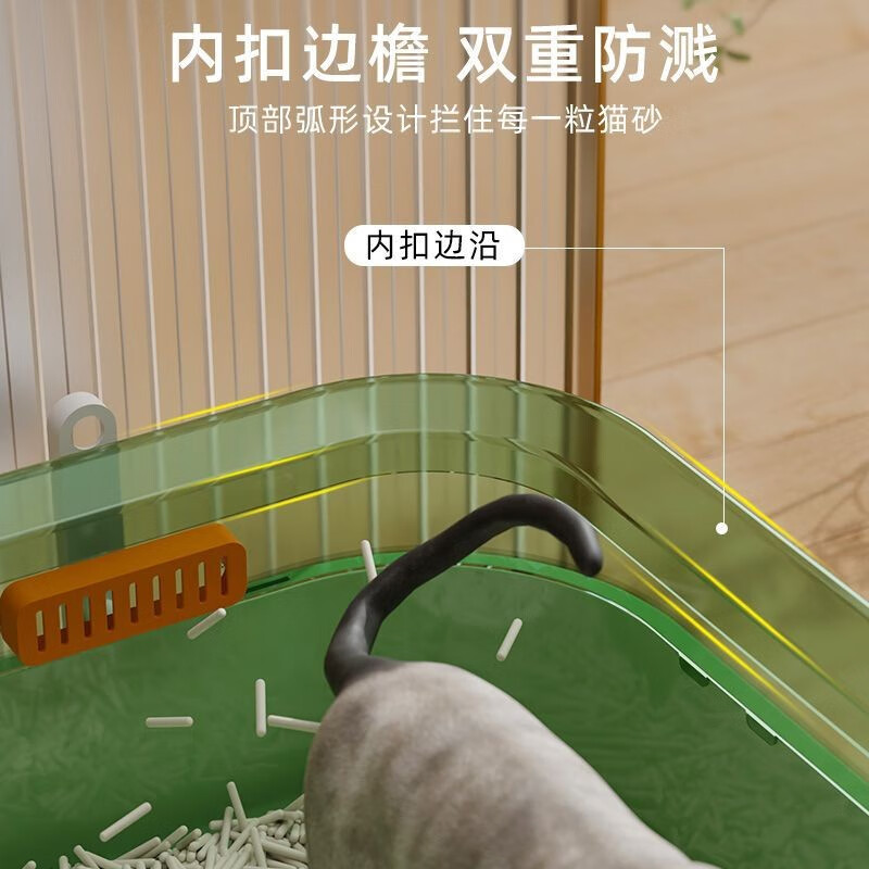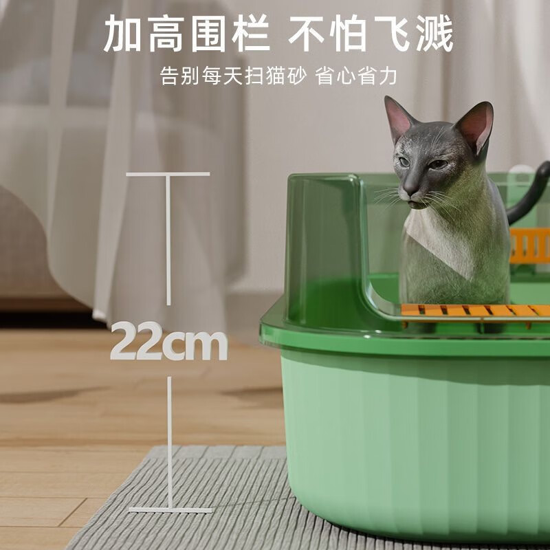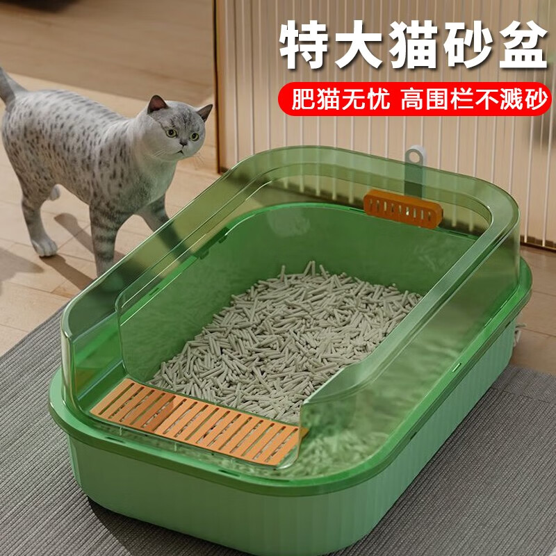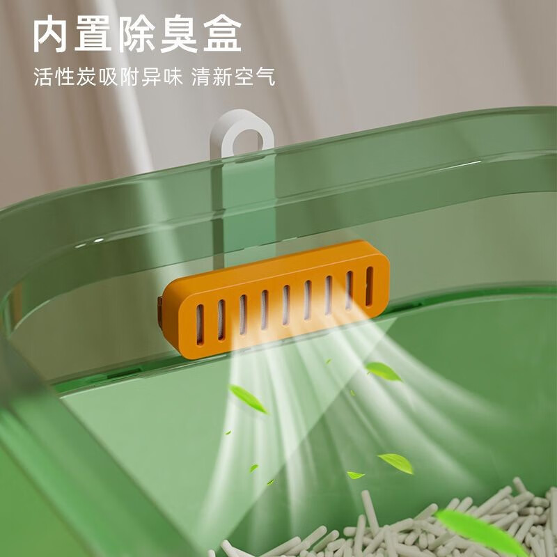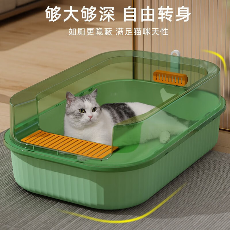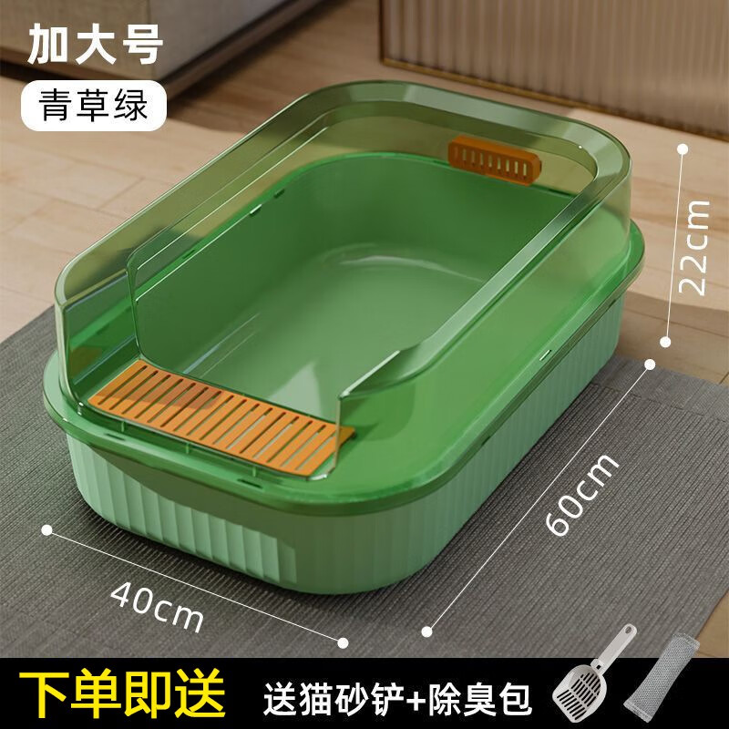 易立超大猫砂盆特大号顶入半封闭猫厕防外溅猫屎盆猫沙盆带猫砂铲 【带除臭盒】猫砂盆-青草绿 加大号-适合30斤内
