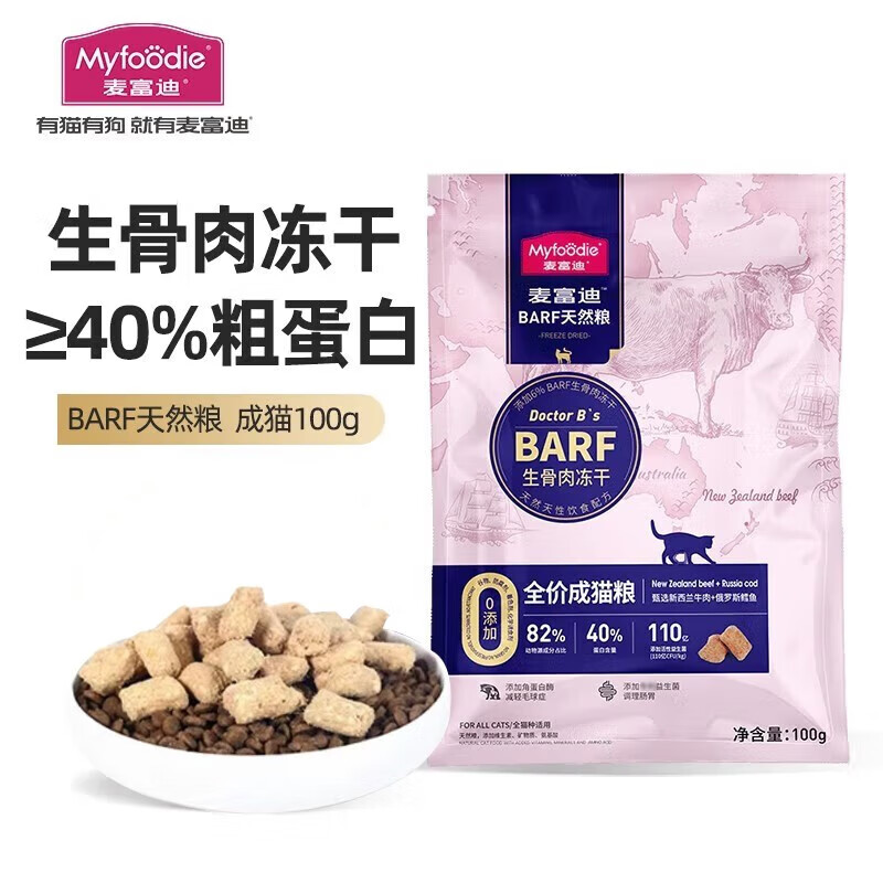 麦富迪猫粮 barf霸弗生骨肉冻干无谷双拼猫粮天然粮 牛肉鳕鱼成猫试吃100g