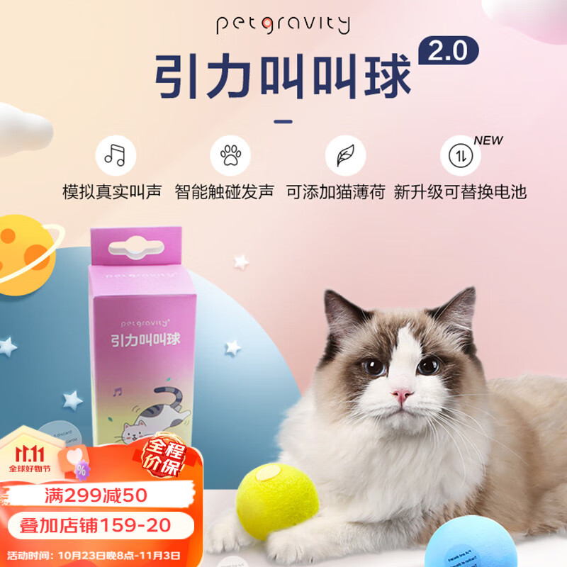 柒哦猫玩具引力叫叫球自嗨解闷球触碰发声耐咬逗猫神器逗猫棒宠物猫咪用品 叫叫球(无毛款)-粉色